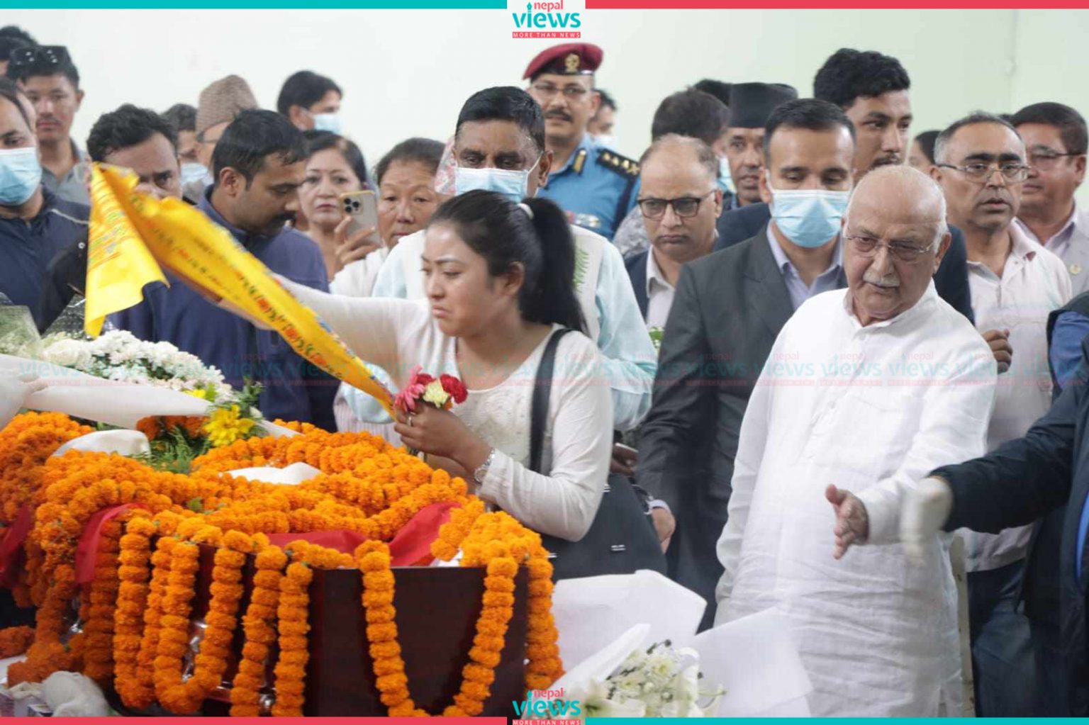 The government already decided to perform the last rites of the Chairperson of the Constituent Assembly Nembang with state honors. People are passing condolence to Nembang.
