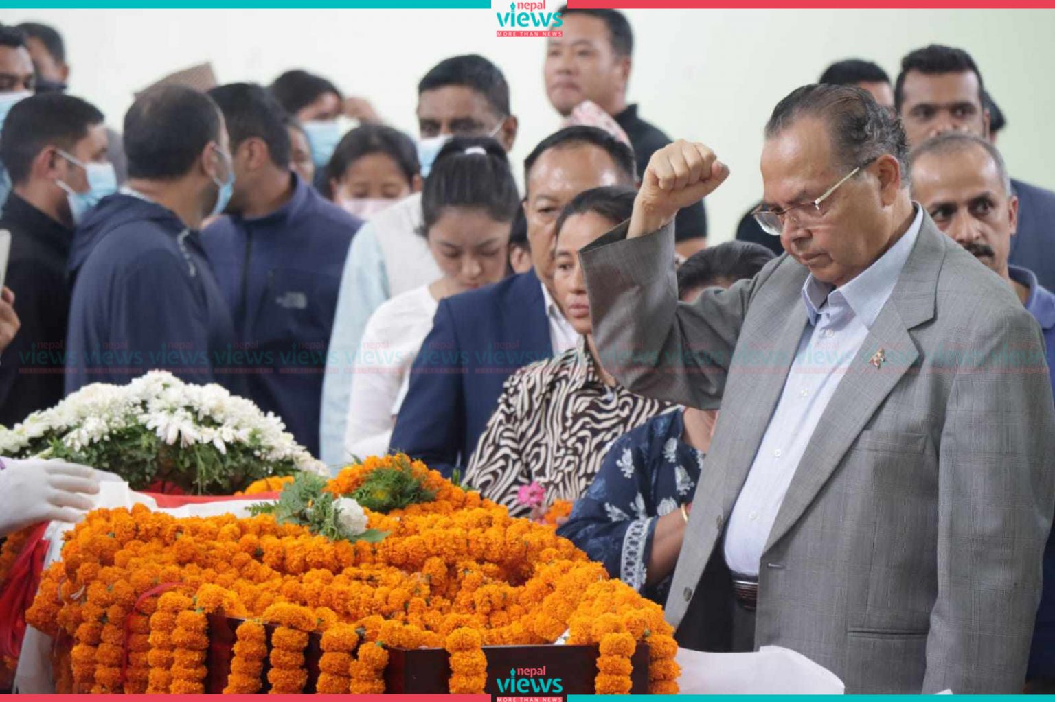 Kathmandu: The current state of the CPN (UML) Center Office is grieving. Subash Chandra Nembang's body has been kept in the office for the last tribute.