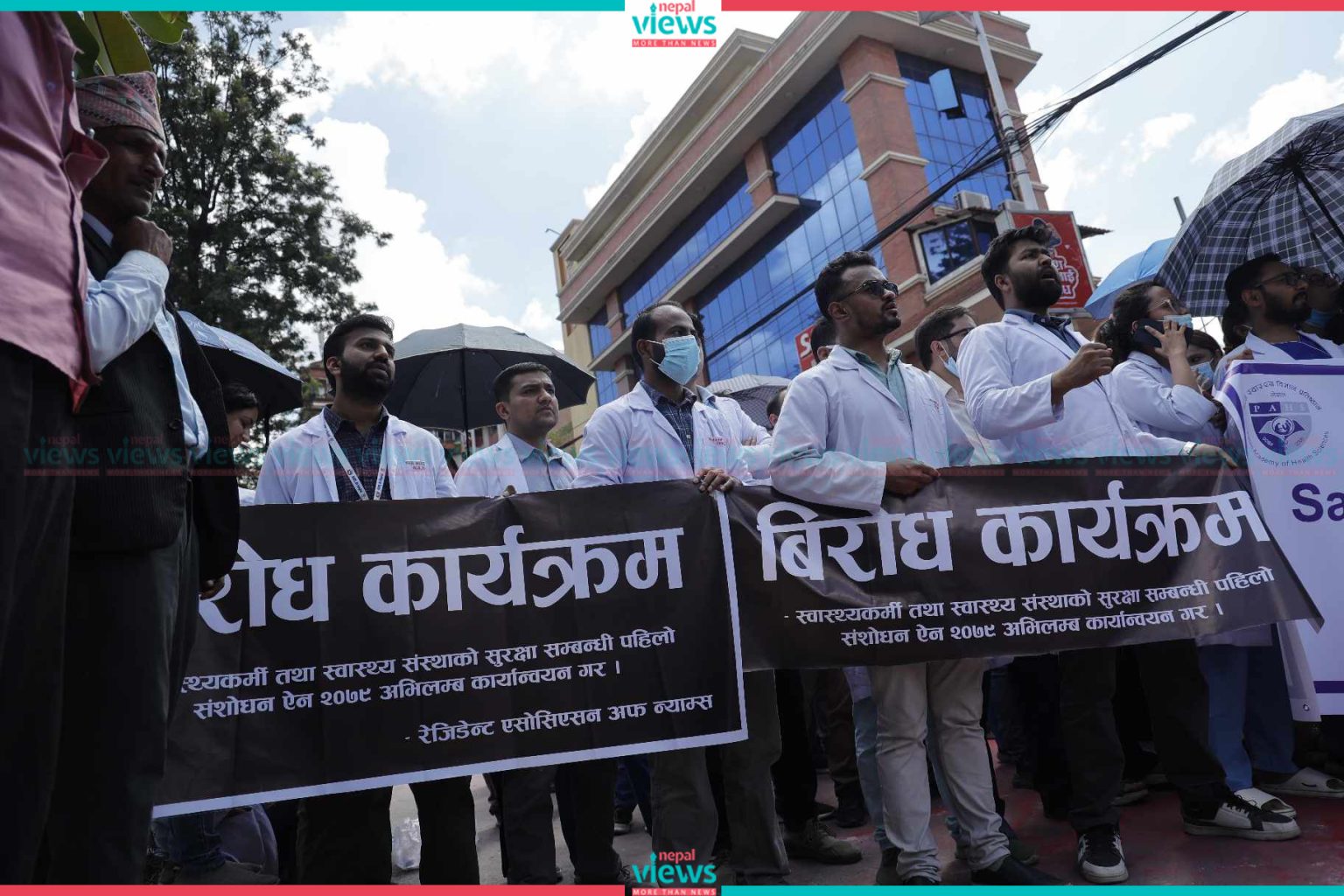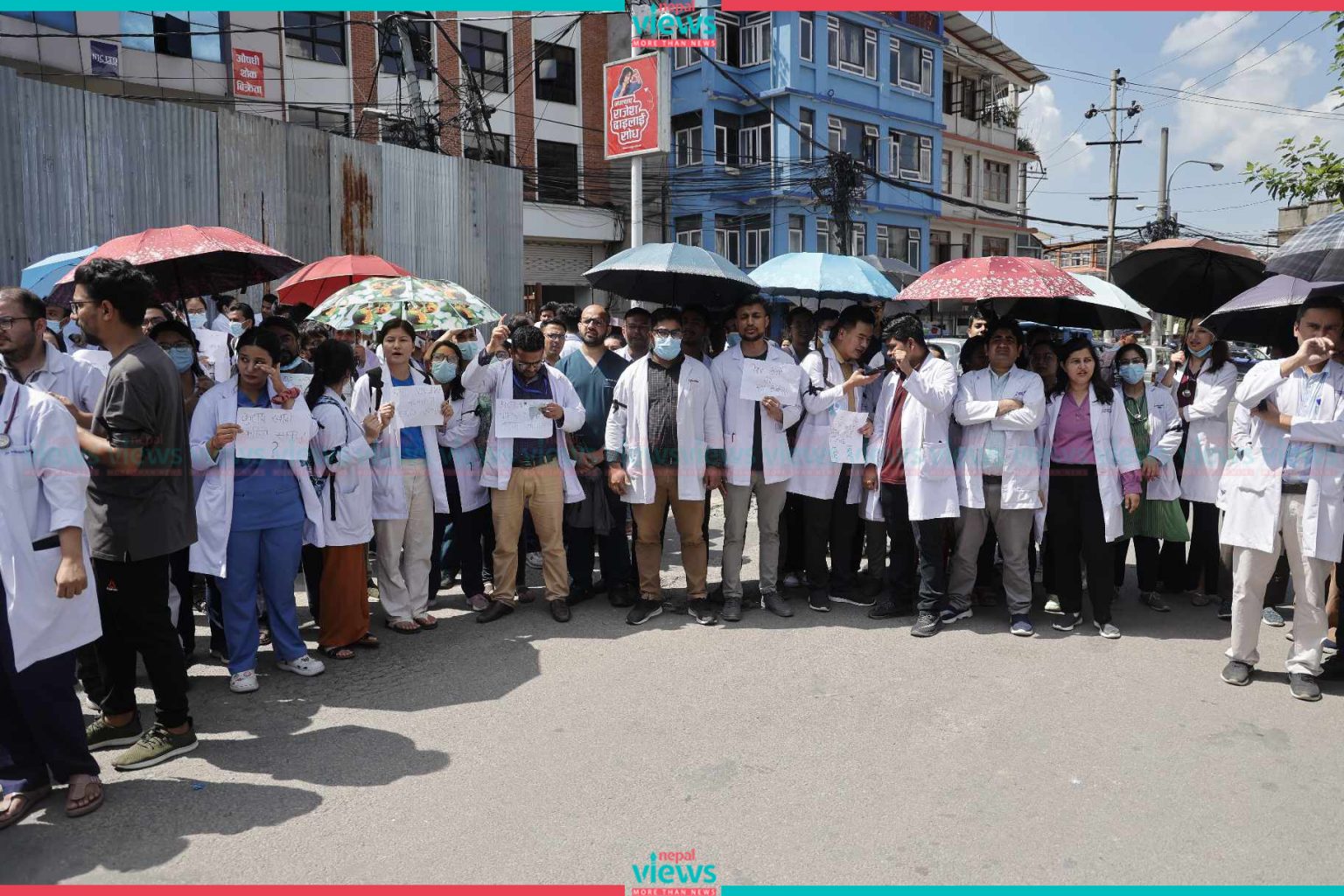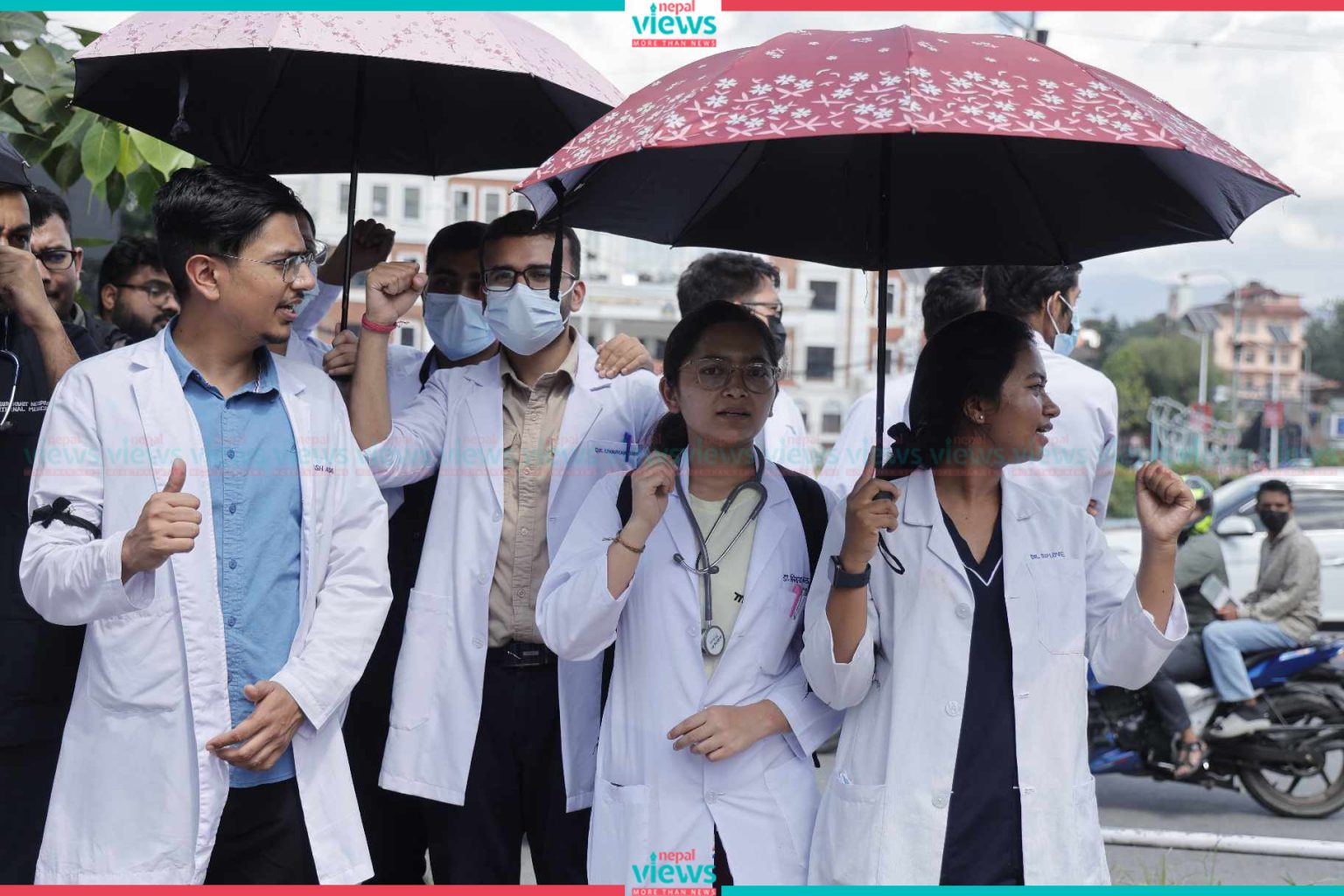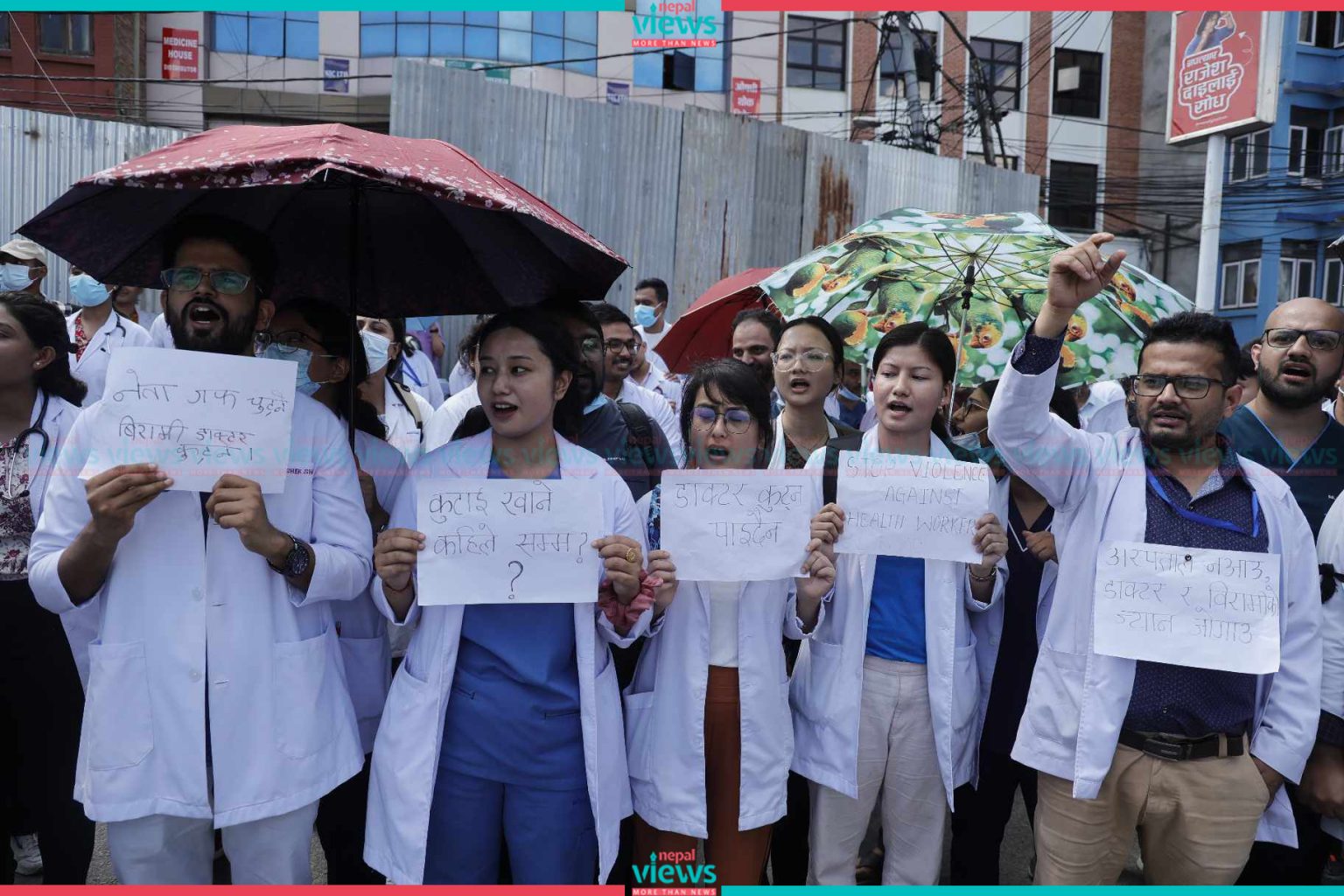 Kathmandu: Doctors have started their demonstration on the streets. The doctors started their demonstration demanding safety in professional areas in Maitighar on Tuesday.
