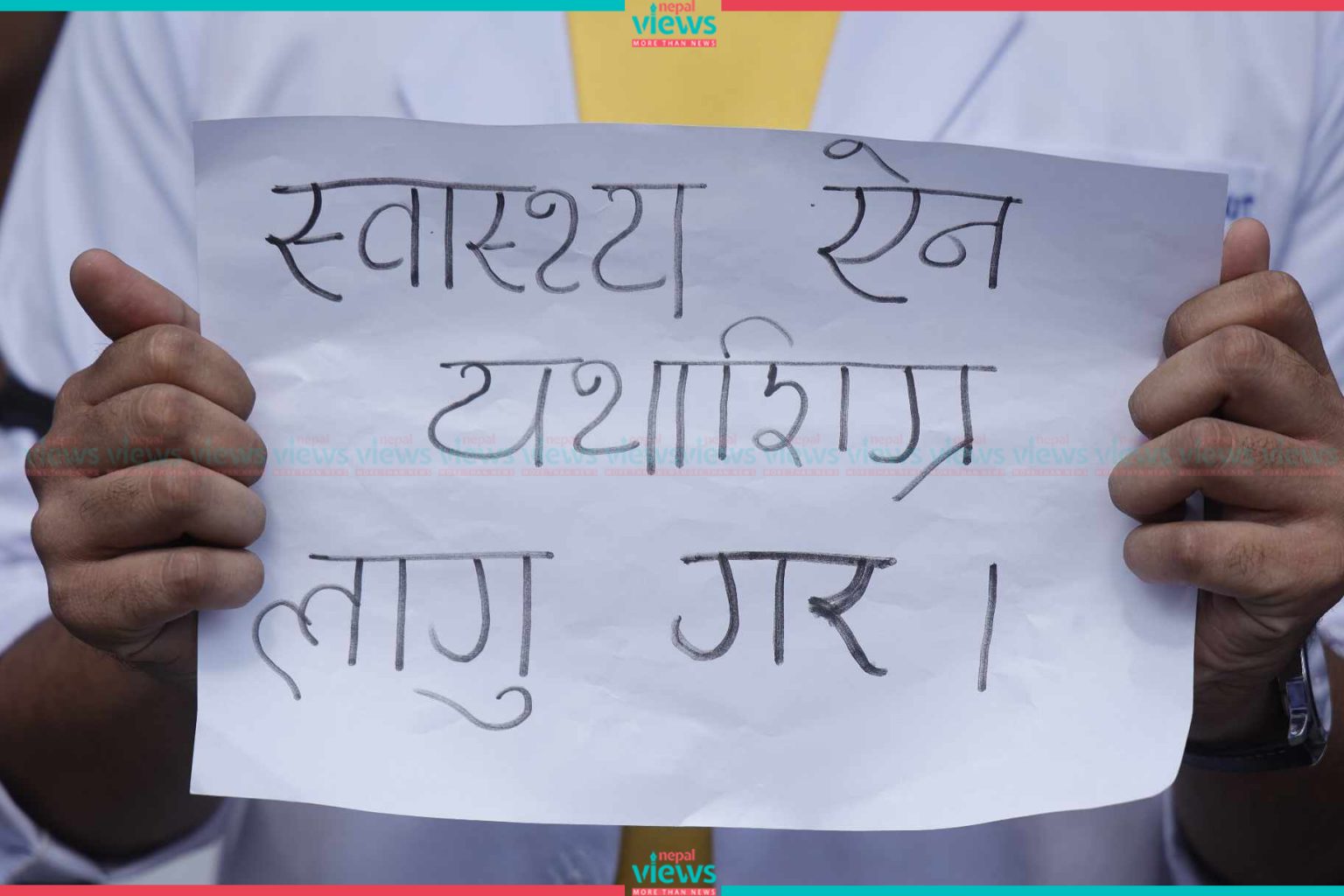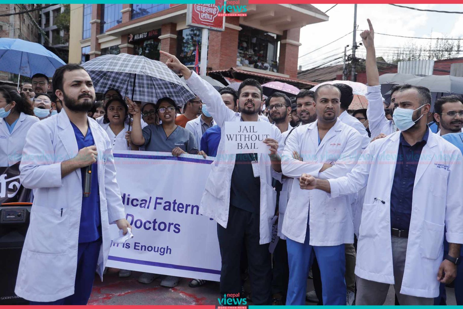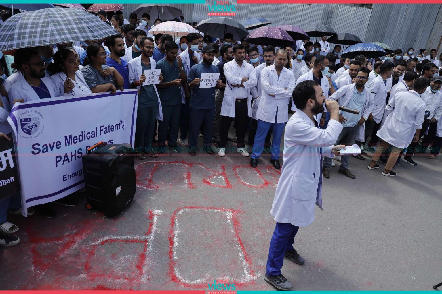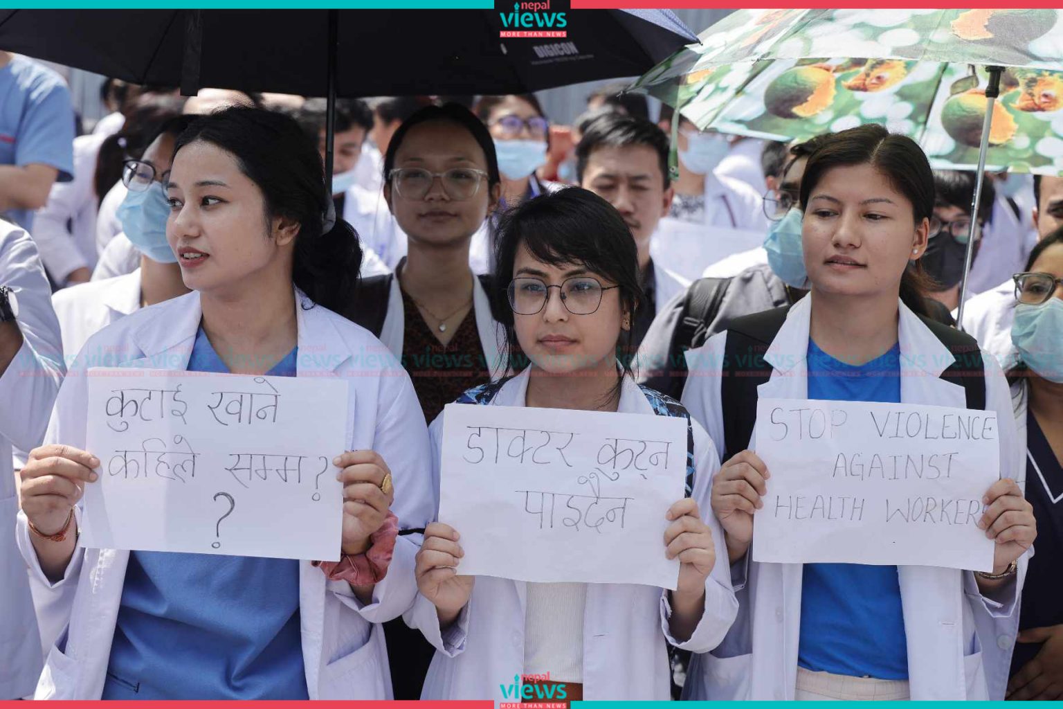 Kathmandu: Doctors have started their demonstration on the streets. The doctors started their demonstration demanding safety in professional areas in Maitighar on Tuesday.