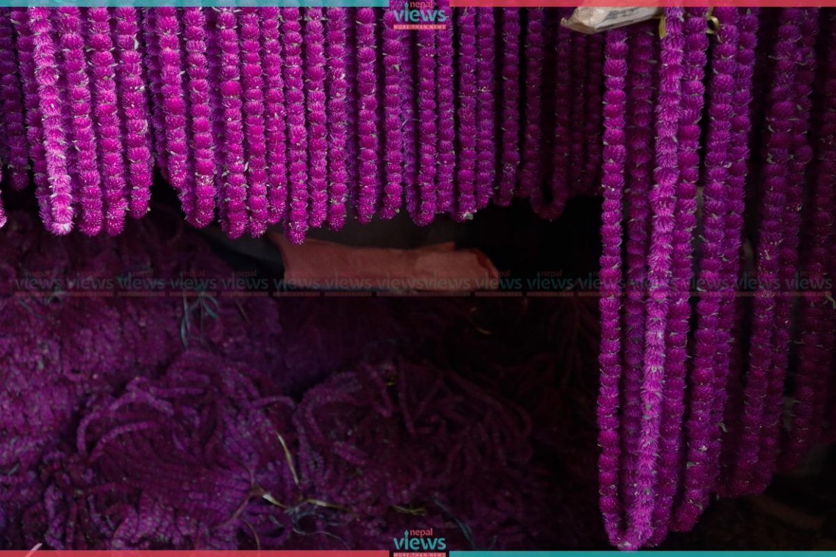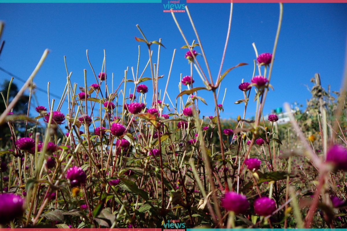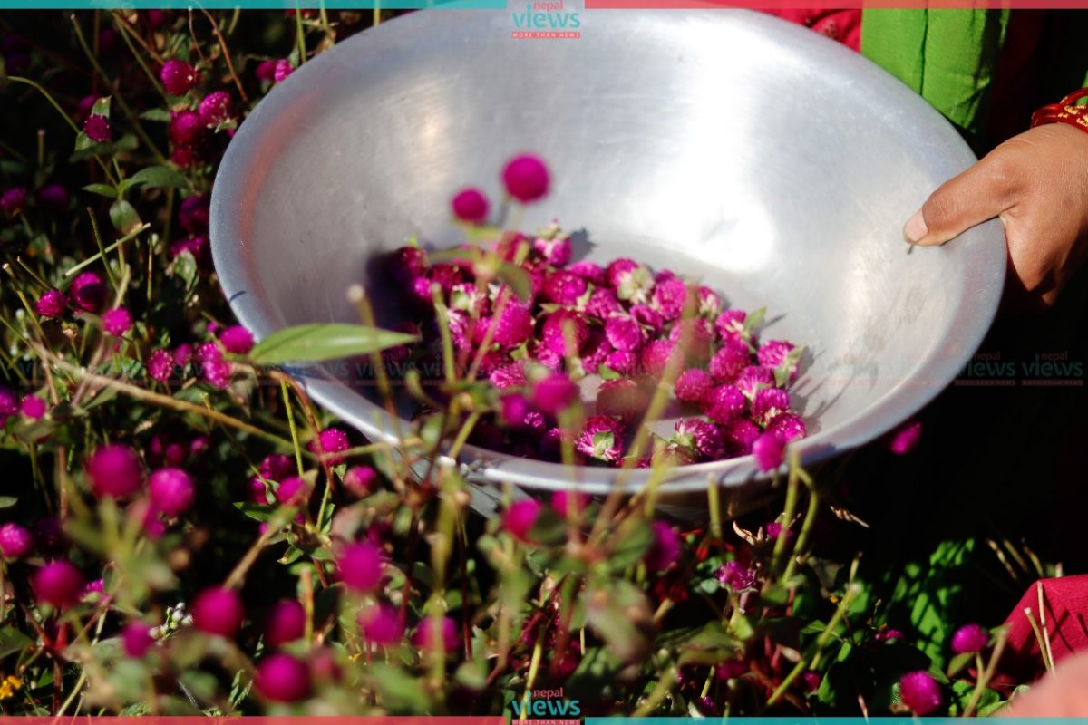 Due to Adhik Mass, Dashain was celebrated 15-20 days late this year. But Globe Amaranth had already blossomed. Hence farmers started plucking the flowers to weave garlands of Globe flowers.