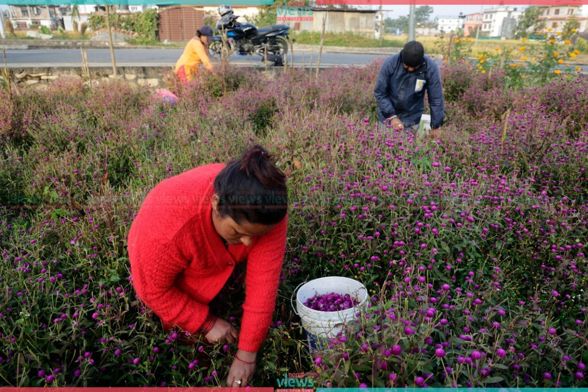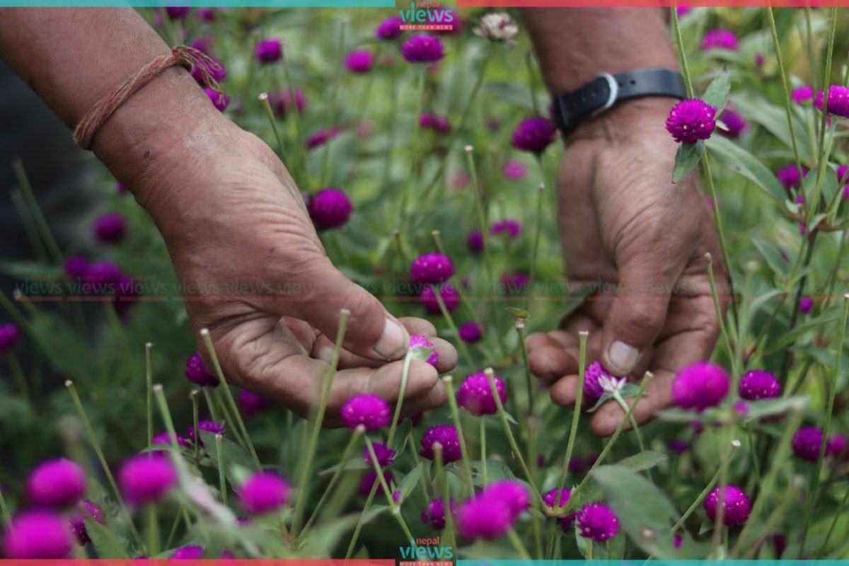 Bhaktapur: Farmers are busy plucking Globe Amaranth (Makhamali) flowers in Gundu.