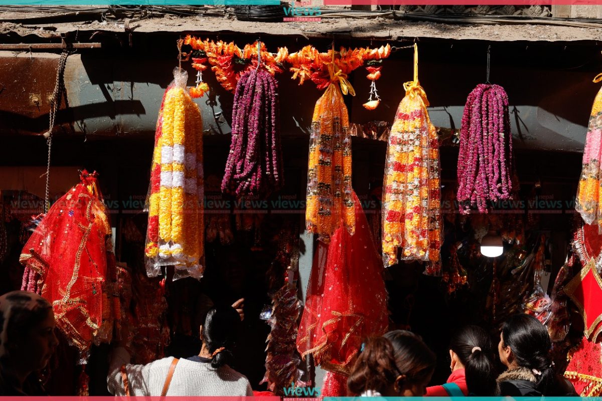 People can be seen busy buying Globe Amaranth garlands, Saptarangi flowers, fruits, utensils, red soil, Bhai Masala, Saptarangi Tika (Colourful Tika), etc for the approaching festival.