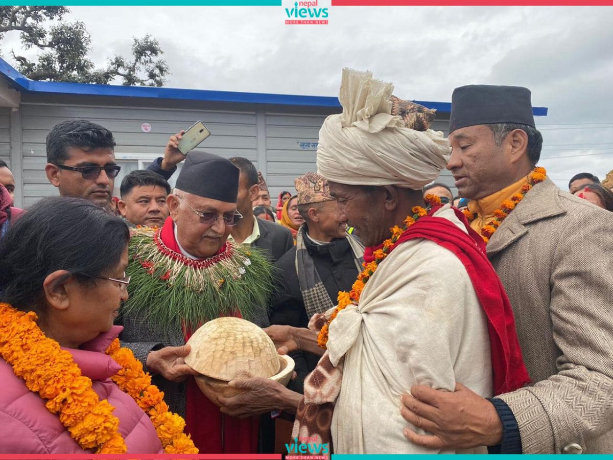 Oli visited Gurans Rural Municipality under the 'Jhulaghat-Chiwabhanjyang Resolution March for Prosperity.'