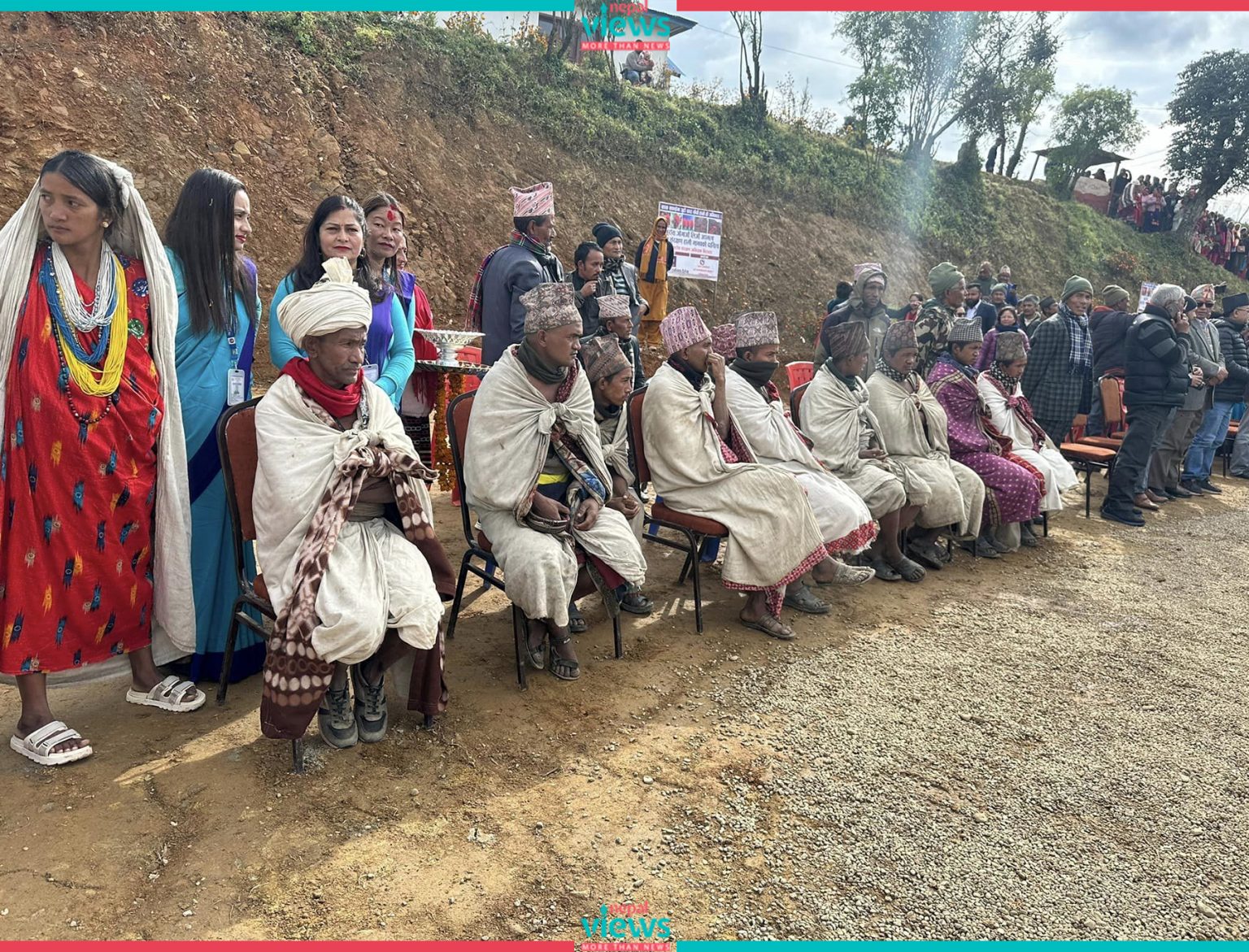 Chairperson Oli went to meet the Raute community, which is residing in Gurans Rural Municipality, Dailekh, on Monday. Raute's Chief Surya Prakash Shahi gave Kosi as a gift to Oli.