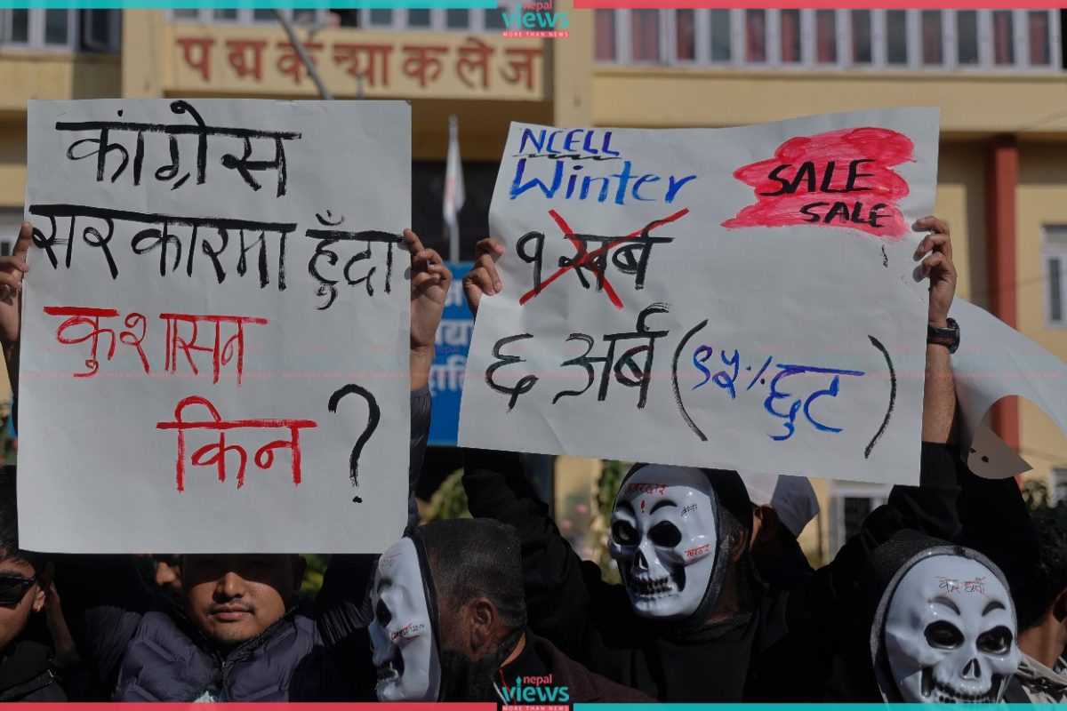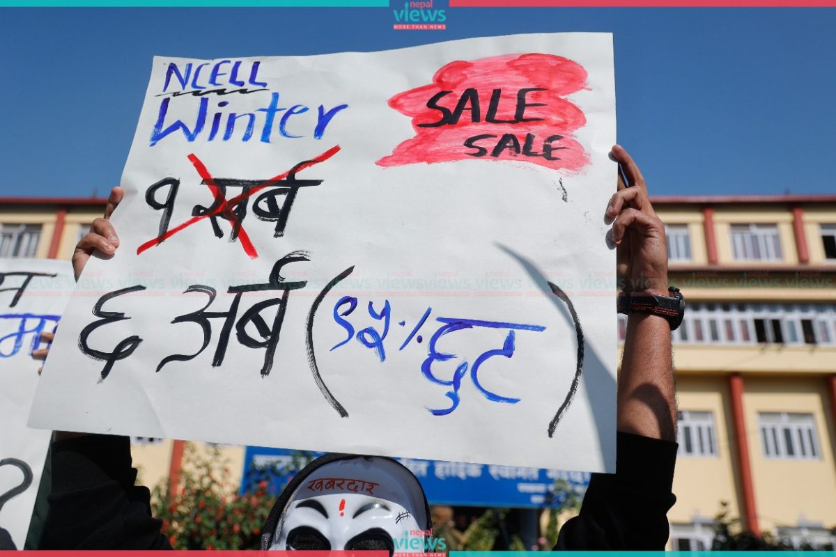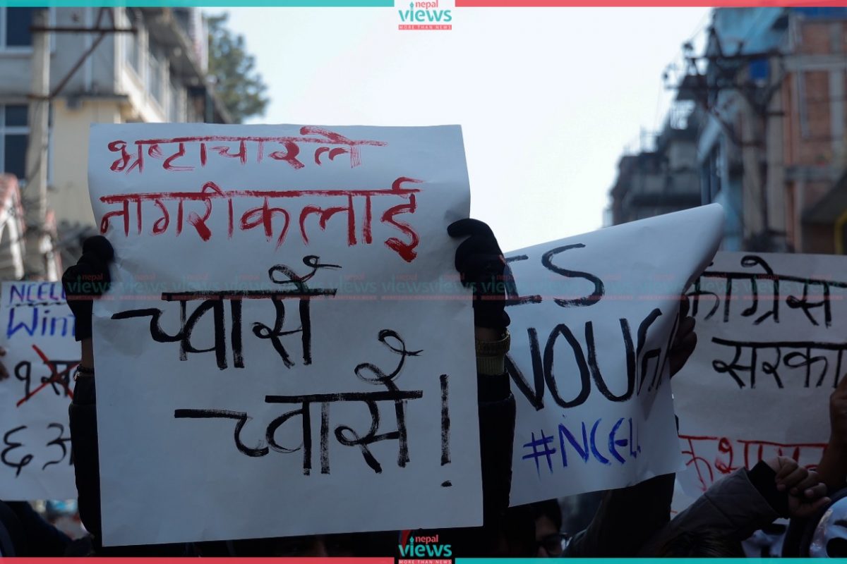 Kathmandu: Nepal Student Union (NSU), a student wing close to Nepali Congress, has demonstrated against the Ncell share transaction scandal