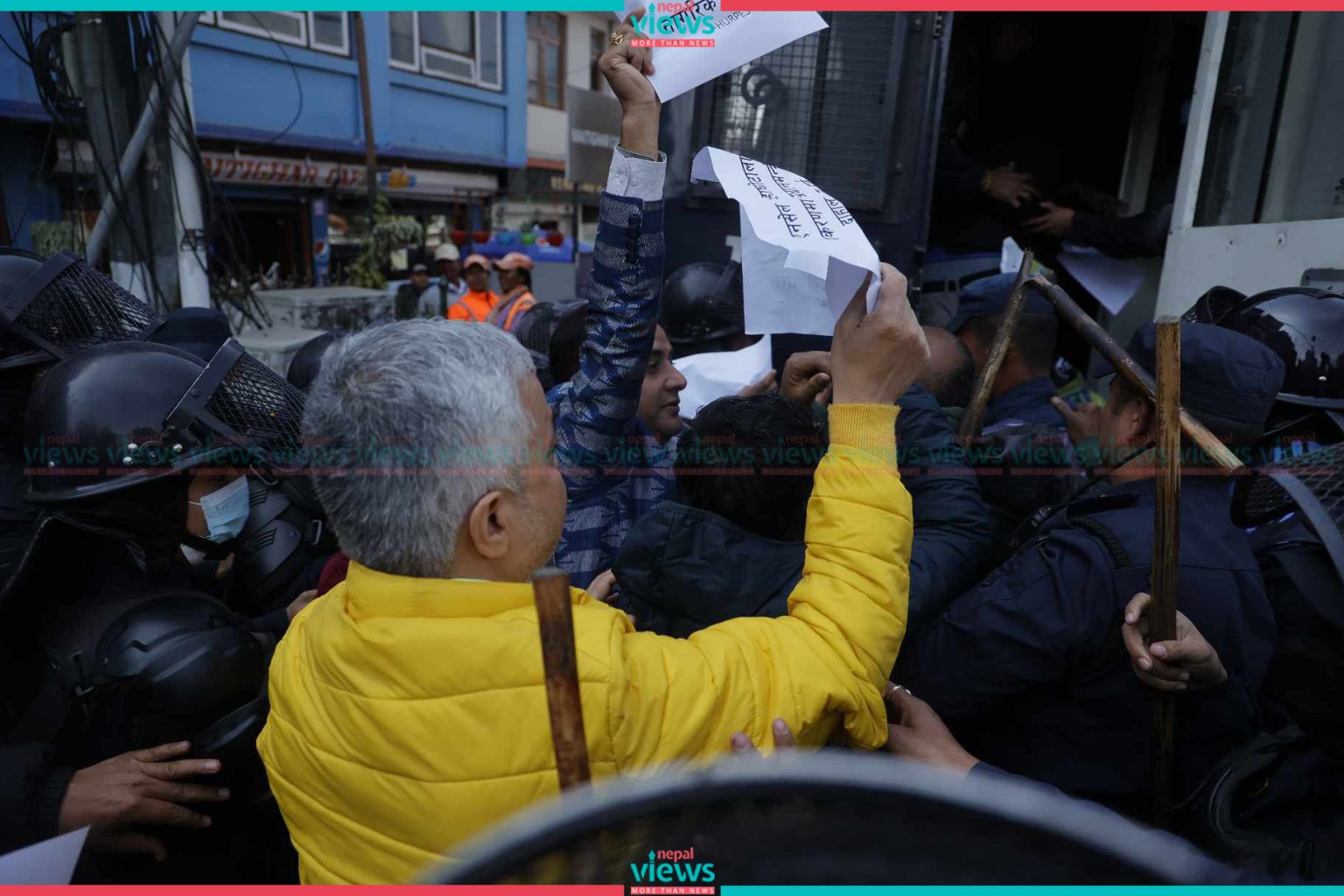 The demonstrators tried to break the prohibition order issued in Maitghar and attempted to conduct a protest against corruption including the Ncell share transaction scandal on Thursday.