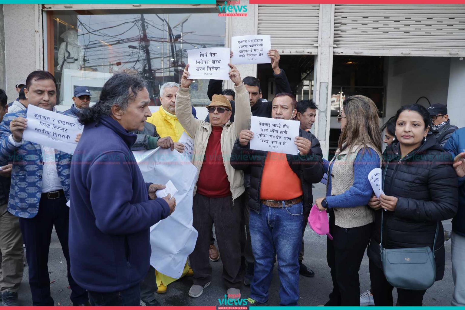 Demonstrators from the Human Rights Activists and Peace Society raised their voices against the corruption cases. Police arrested more than half a dozen people including the Founder and Chairperson of the Society Krishna Pahadi, Central Chairperson Ram Krishna Baral, and Former Chairperson Uttam Pudasaini.