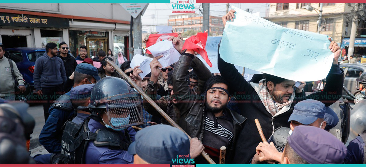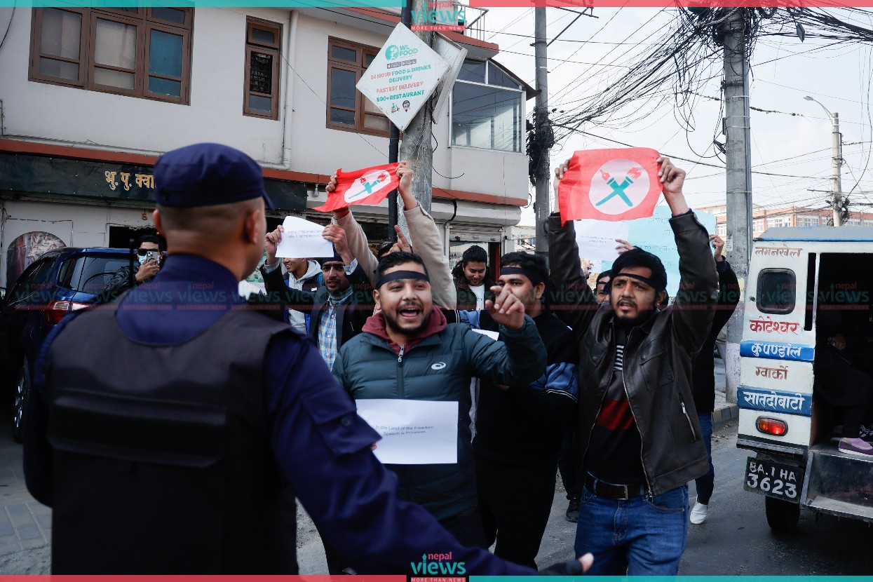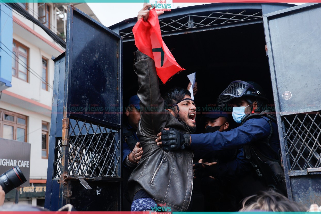 Kathmandu: Police have arrested the members of the Nepal Student Union (NSU), a close wing of the Nepali Congress Party, and supporting students to NSU for demonstrating with the demand to lift the prohibition order issued in Maitighar.