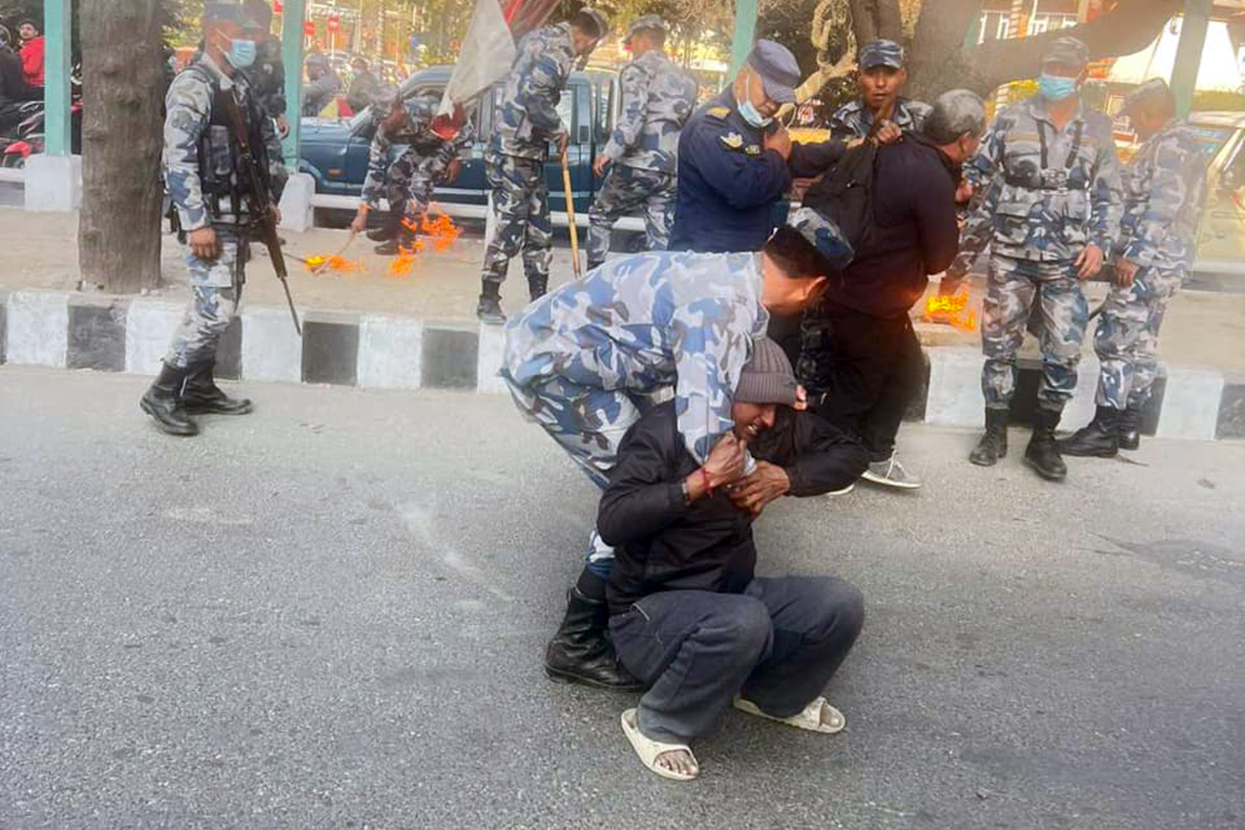 They had demanded to remove the prohibition from Maitighar. KMC Metropolitan City Police removed them as they were going for a sit-in.