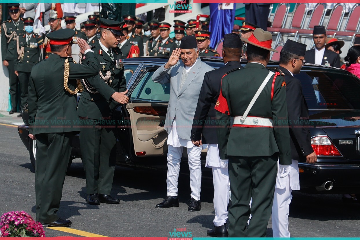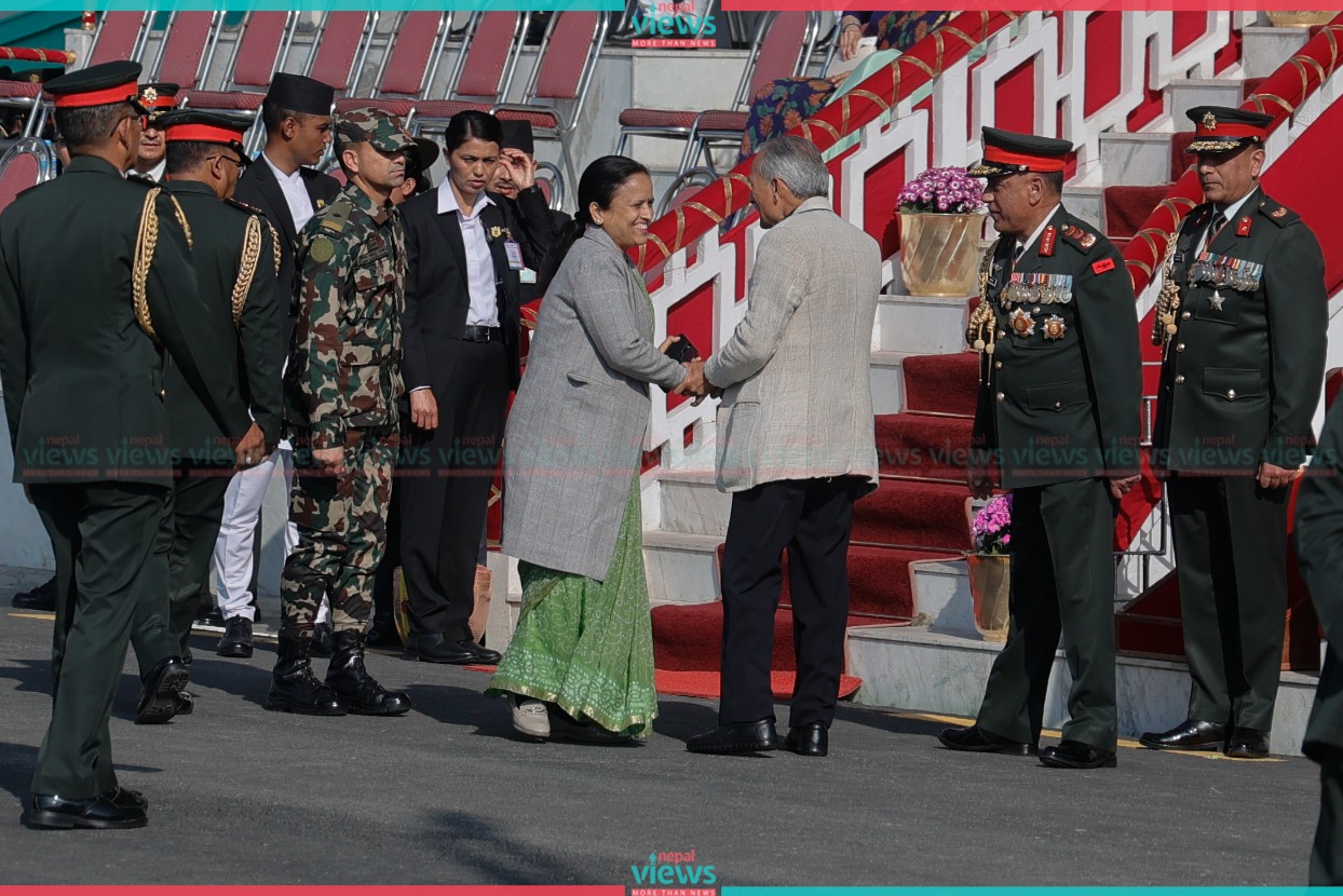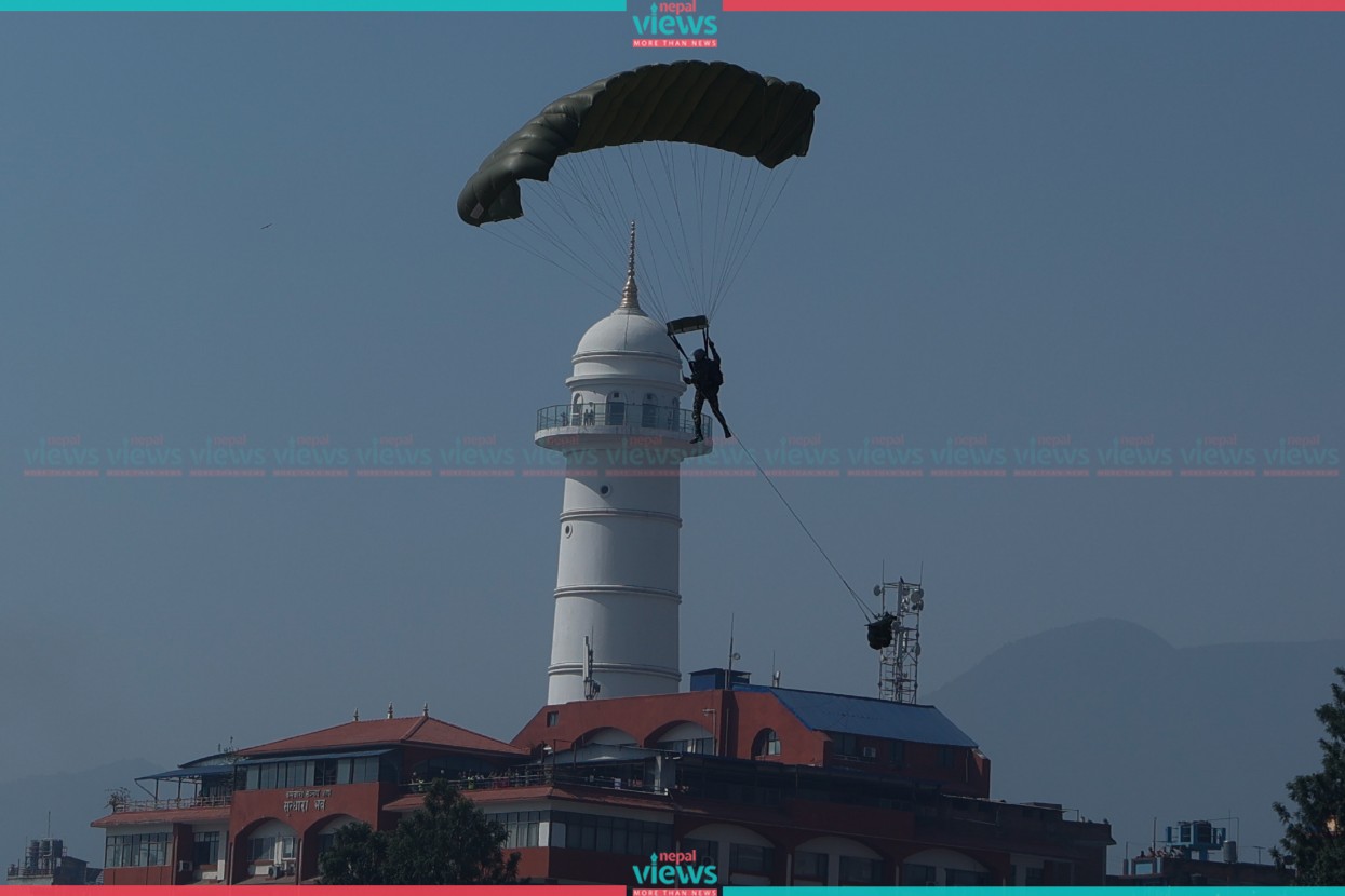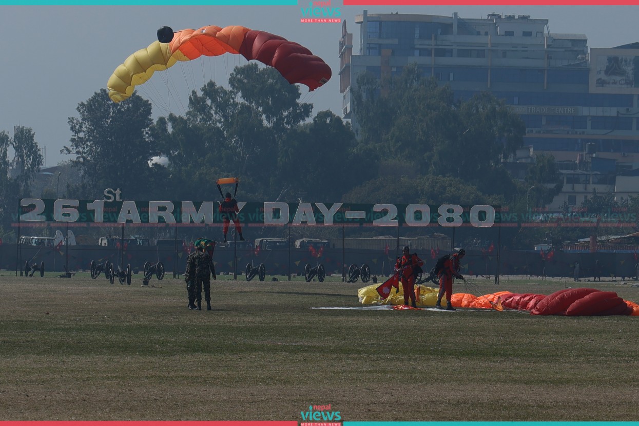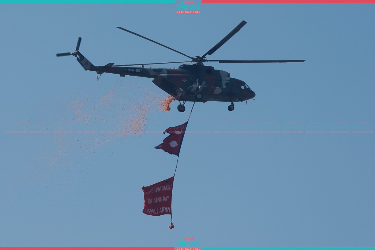 Likewise, President Paudel laid a wreath at the Soldiers Memorial. From a helicopter, the national flag, and Army Day banners were exhibited including flowers showering in the program.