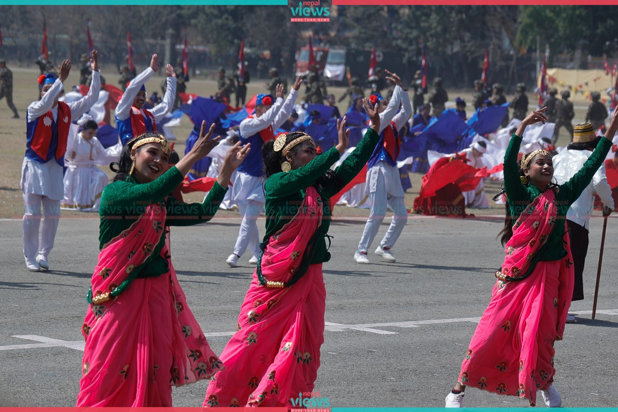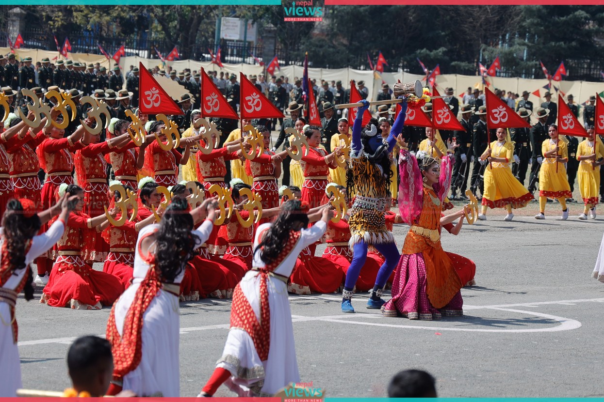 Similarly, different military march passes, cultural programs, and cannon firing were performed in Tundikhel.