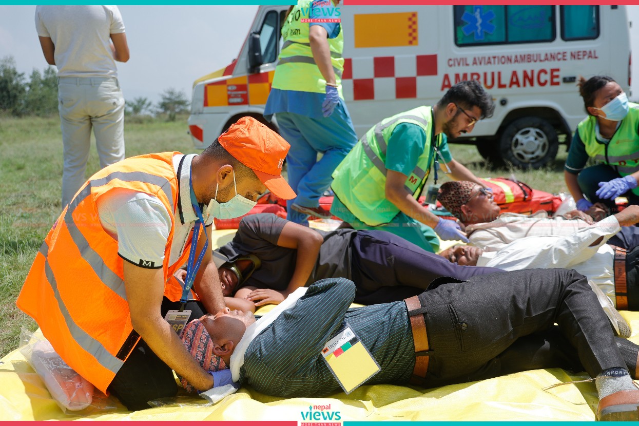 CAAN exercised an emergency rescue drill on Monday as per the International Civil Aviation Organization (ICAO)'s criteria to conduct every 2 years. In the drill, the demonstration was performed for the rescue of injured passengers and deceased and to control the fire.
