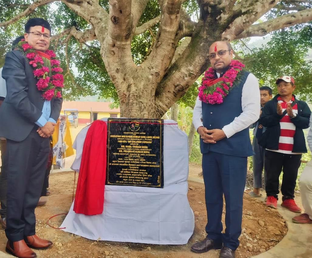 Kathmandu: Nabil Bikram Shah, Chairman, Airawati Rural Municipality, and Prashant Kumar Sona, Second Secretary, Embassy of India, Kathmandu have jointly laid the foundation stone for the construction of Shree Dang-Bang Secondary School and Hostel Buildings at Airawati Rural Municipality-1, Pyuthan District, Nepal.