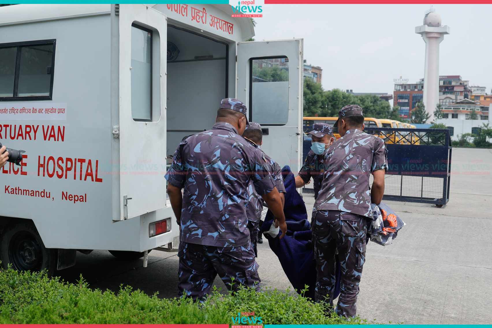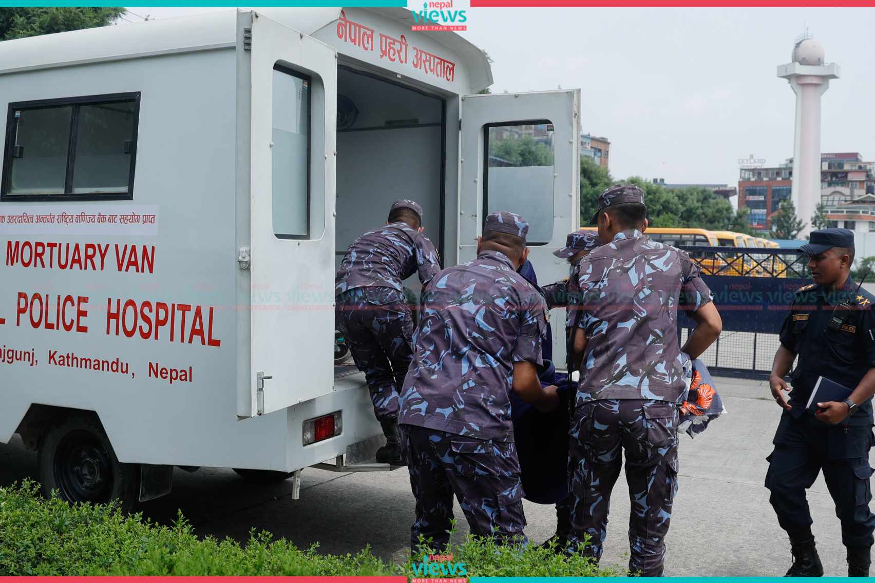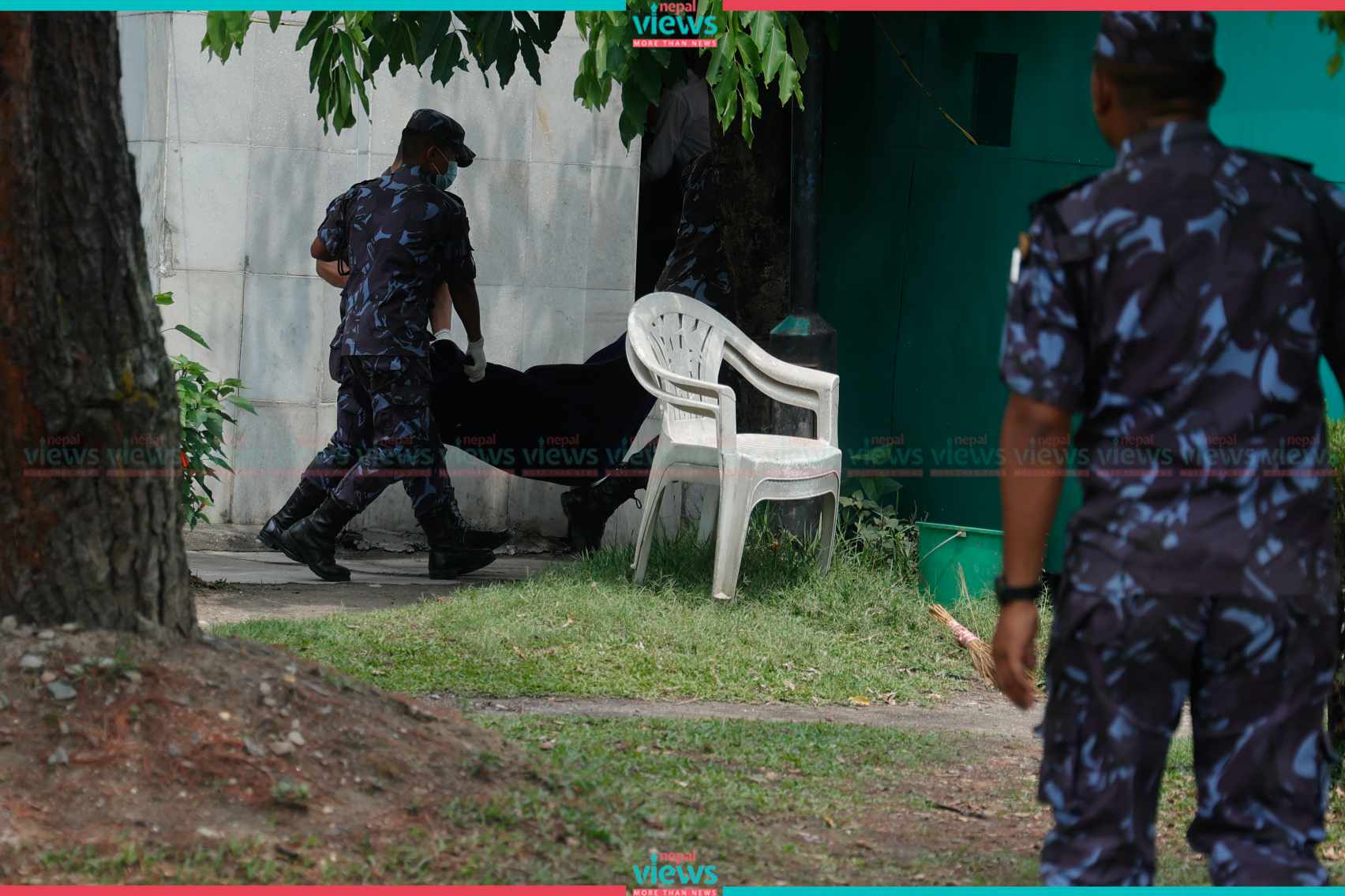 The forensic team picked up the dead body of the constable at the Teaching Hospital in Maharajgunj, Kathmandu.