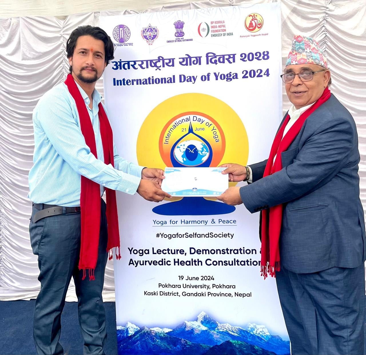 The Embassy of India also organized a yoga demonstration and health consultation with Ayurvedic practitioners in association with Pokhara University. Prof. Prem Narayan Aryal, Vice Chancellor, Pokhara University graced the occasion as Chief Guest.