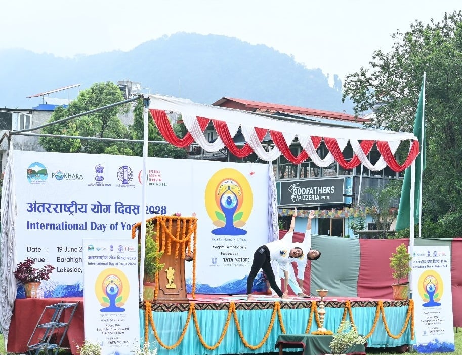 Kathmandu: The Embassy of India organized a Yoga demonstration on the banks of Phewa Lake in Pokhara to celebrate the 10th edition of the International Day of Yoga.