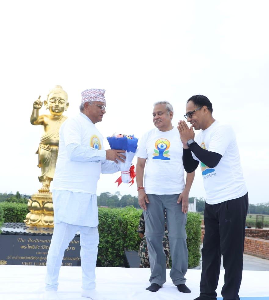 Ambassador of India to Nepal, Naveen Srivastava, underlined that Yoga has become a global phenomenon, particularly since the United Nations designated 21 June as the International Day of Yoga in 2014 based on a proposal by India. He said that the sacred land of Lumbini, a symbol of peace and harmony, provides a perfect setting to celebrate the timeless practice of Yoga.