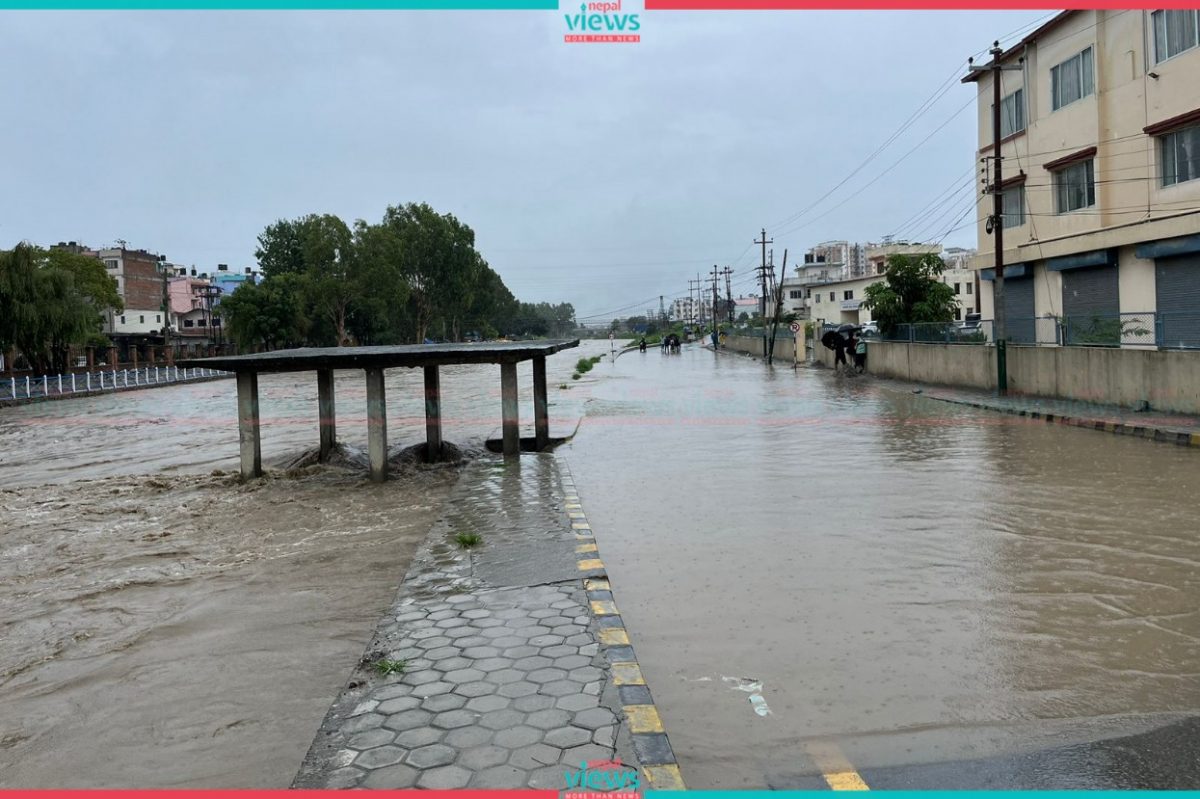 Similarly, the water level of the Manohara River in the Chaysal premises of Lalitpur is also increasing. Even a few sections of the road have been submerged.