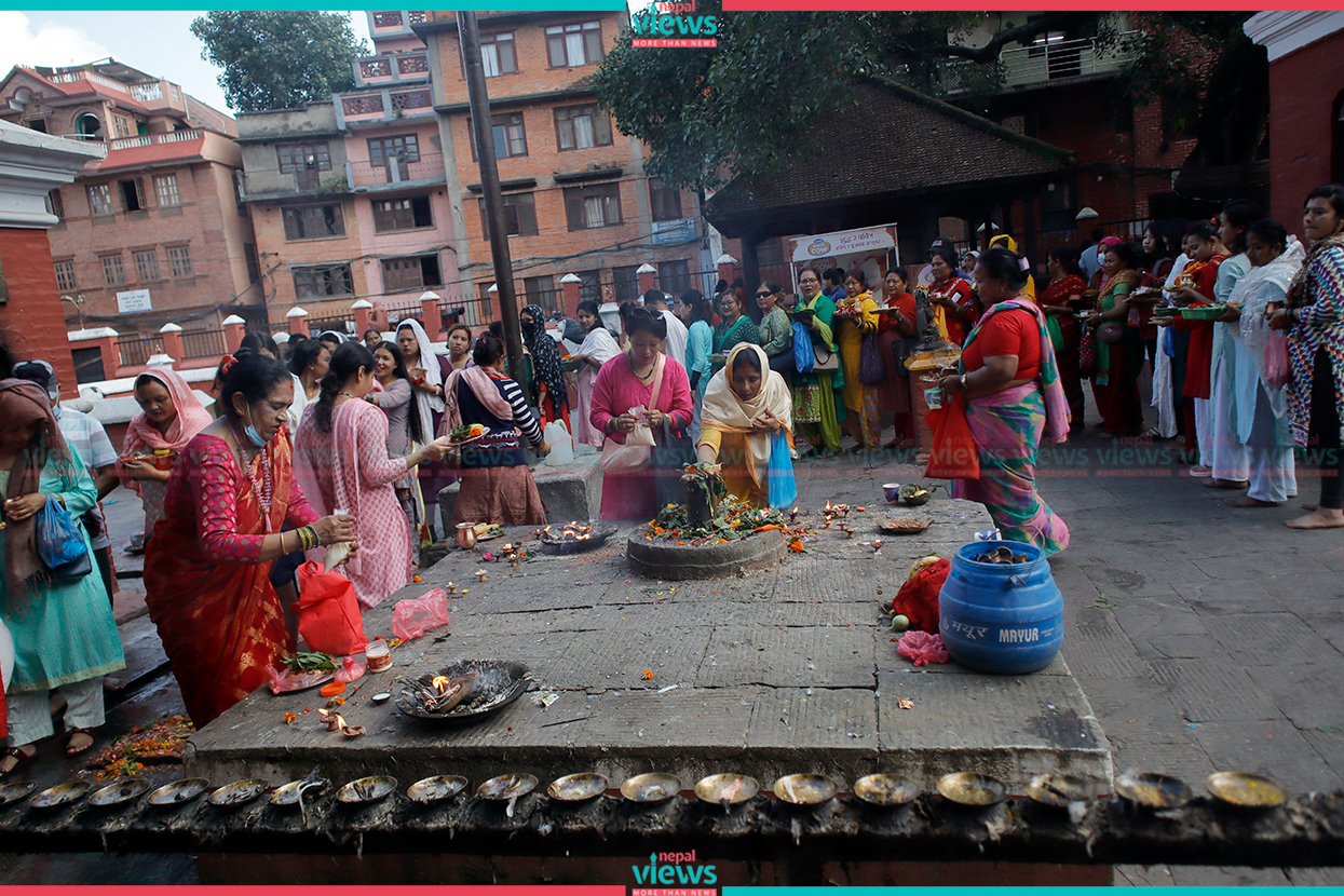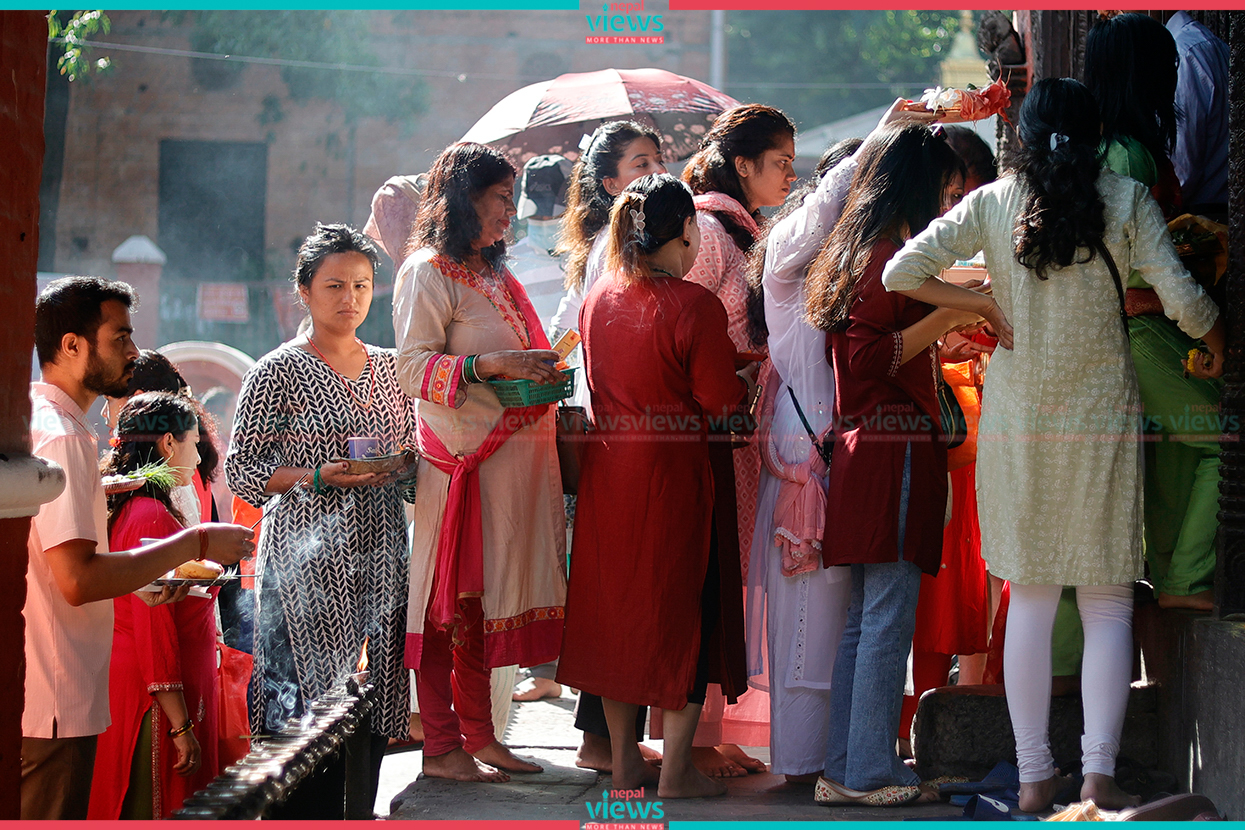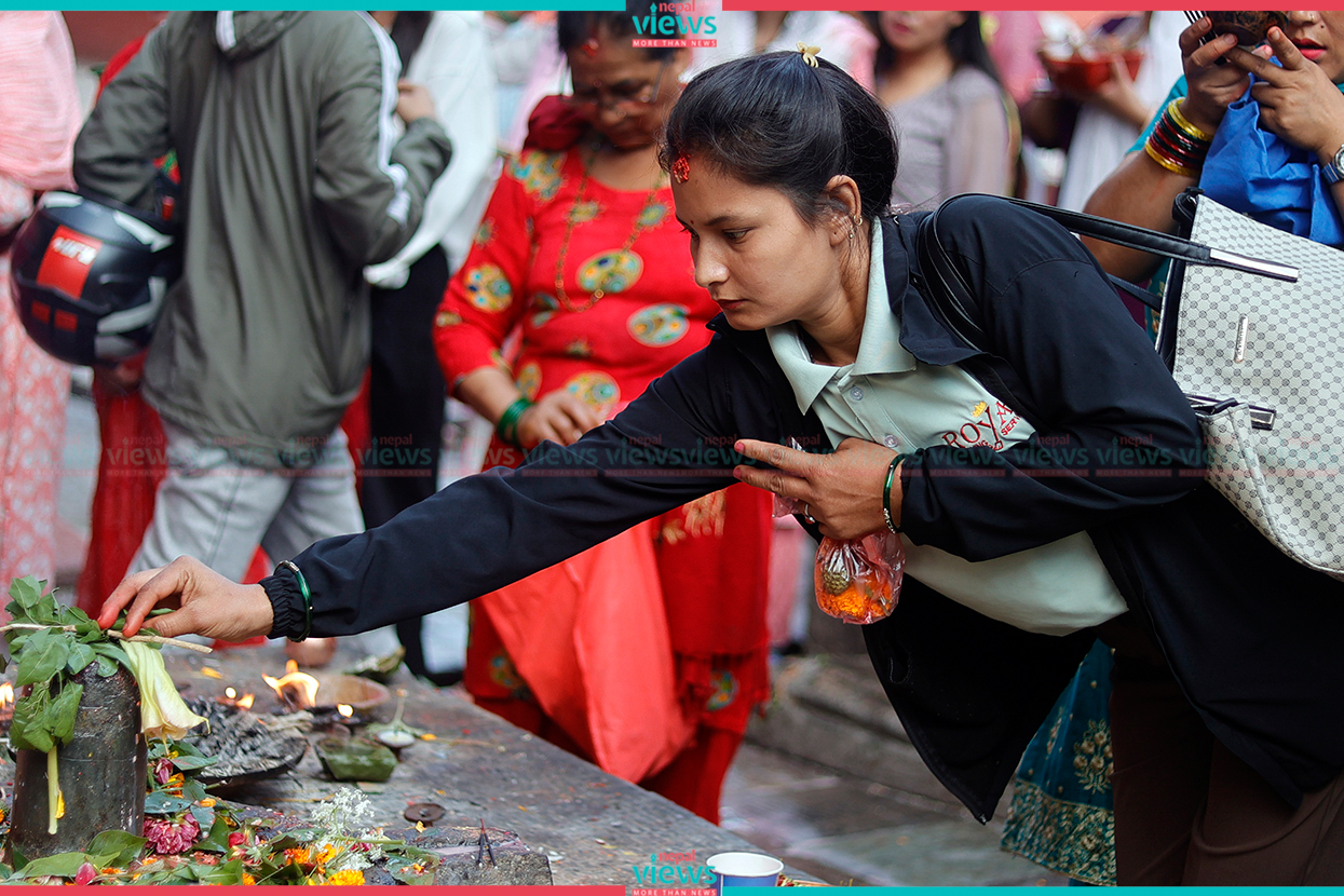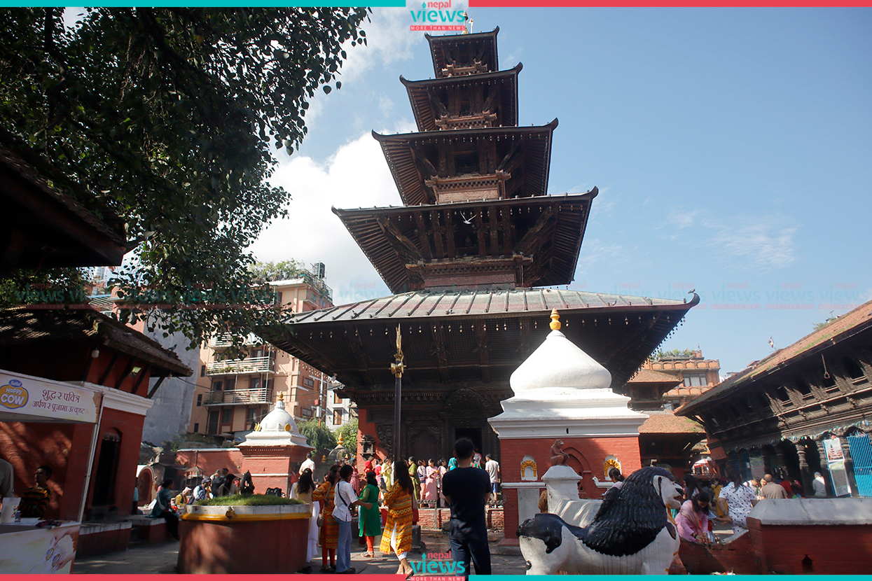 Kathmandu: Hindu devotees have been gathered at Kumbheshwar Mahadev Temple, Patan.