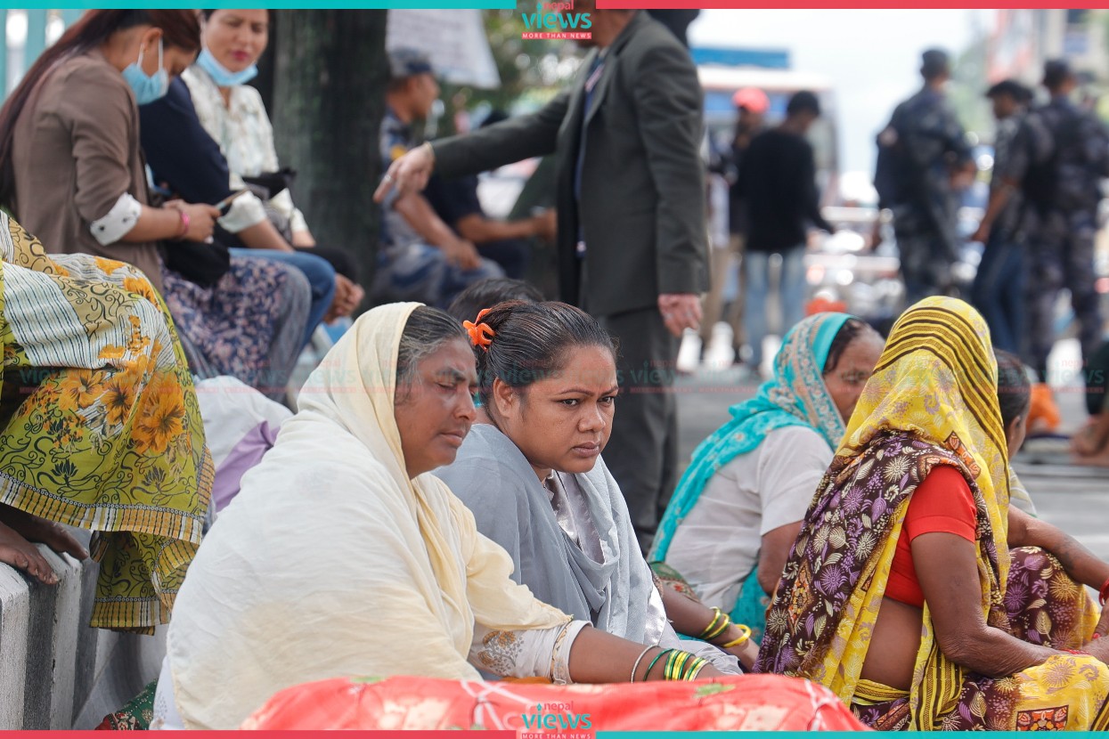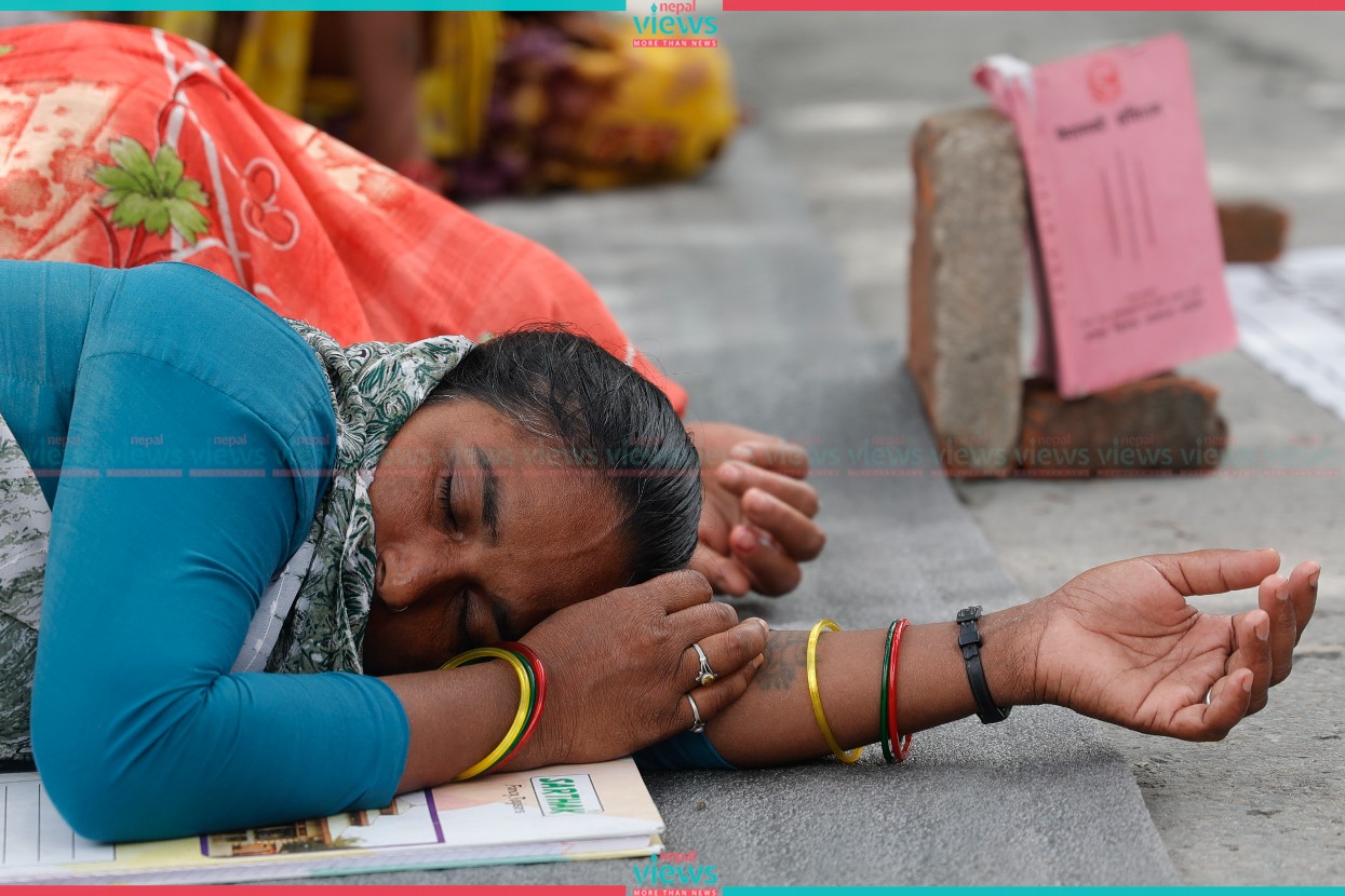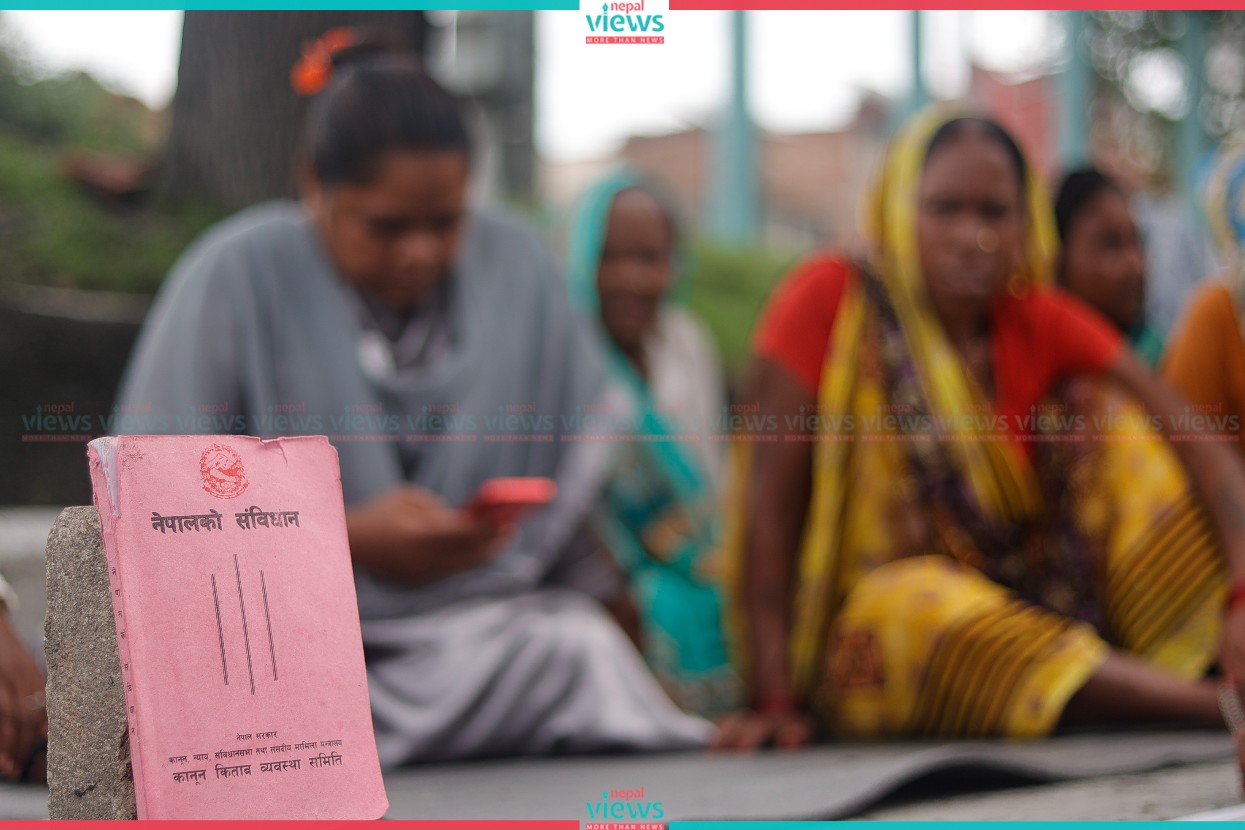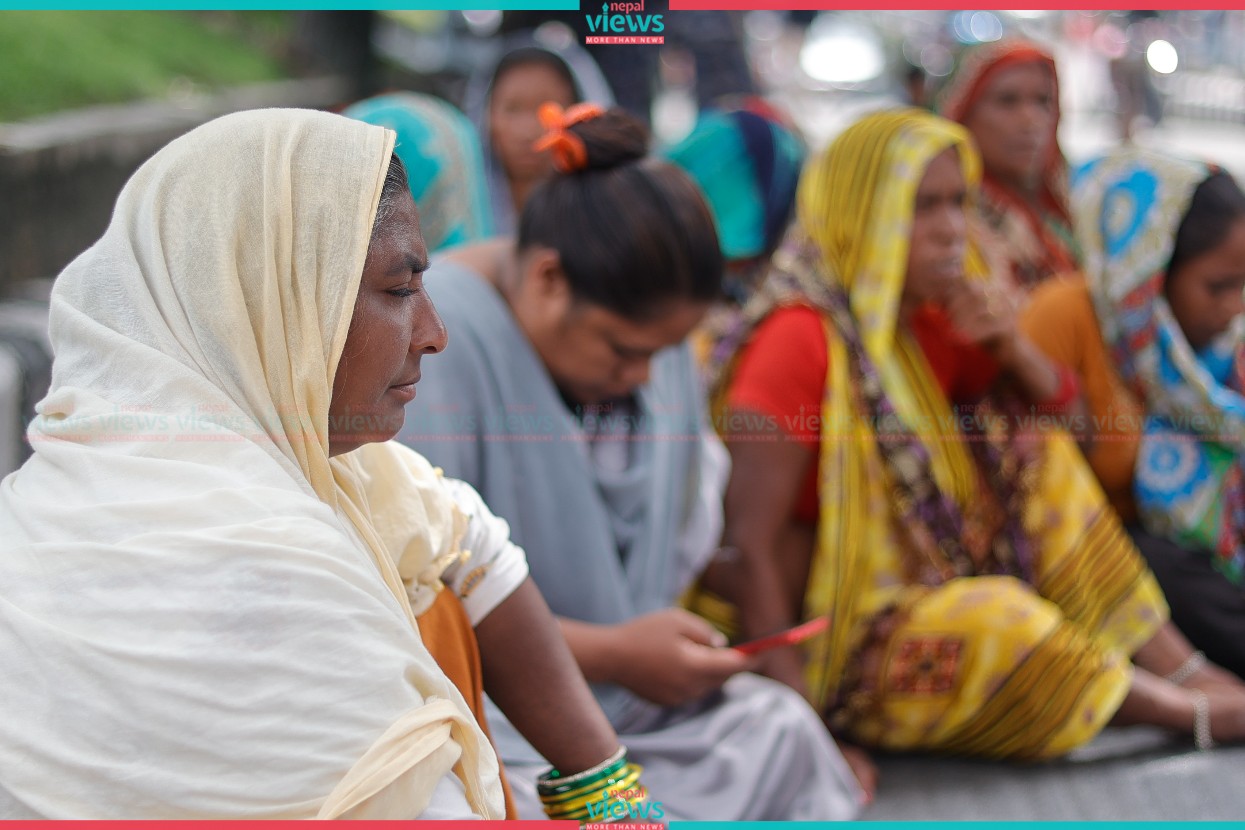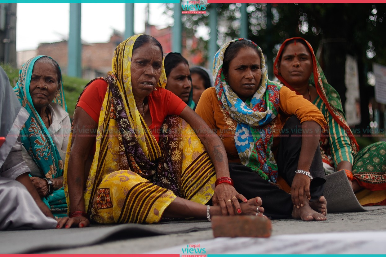 The sit-in demonstration, under the leadership of Rights Activist and Campaigner Ruby Khan, began on Friday. The campaigners accused the Nepali Congress of protecting its leader Badshah Kurmi, the prime accused of Kurmi's murder, and appointed him a Minister.