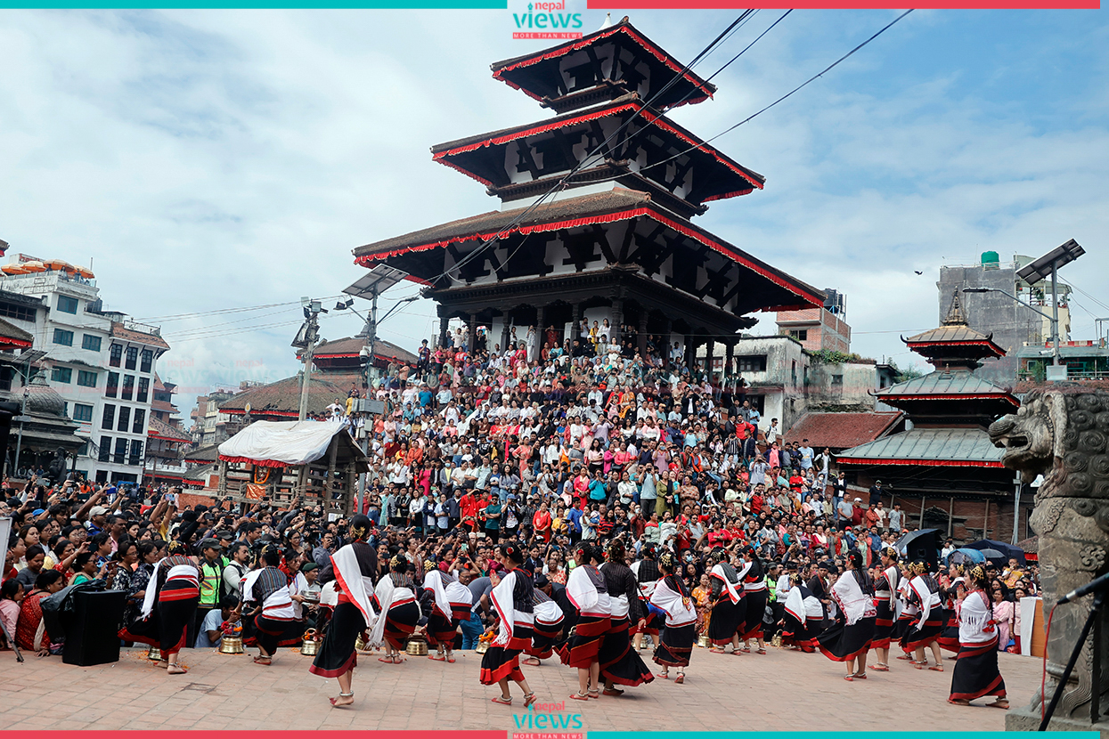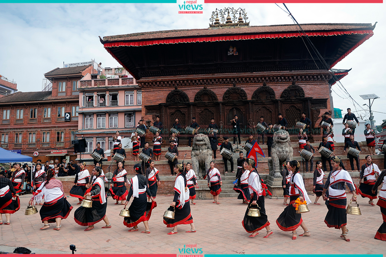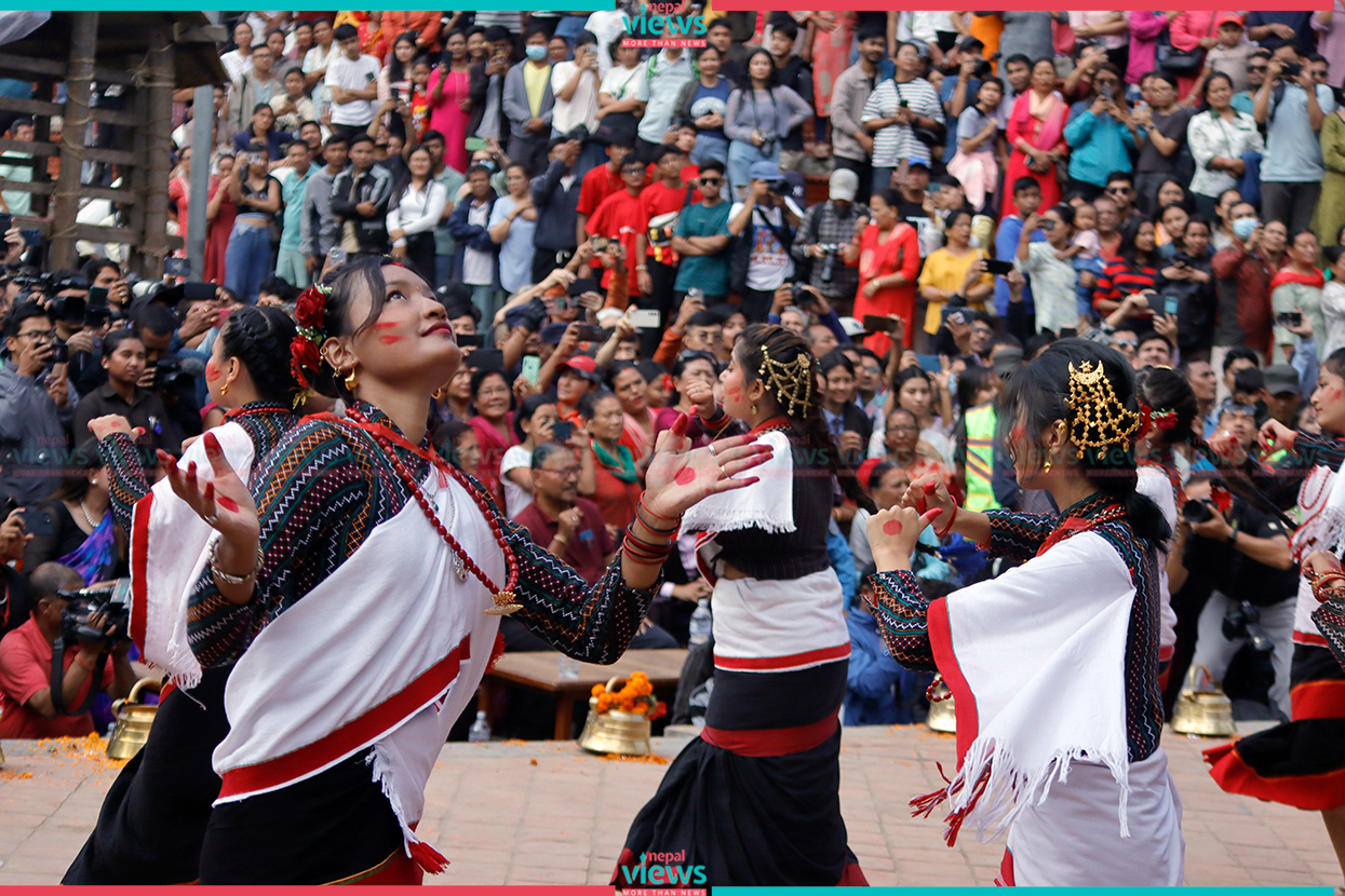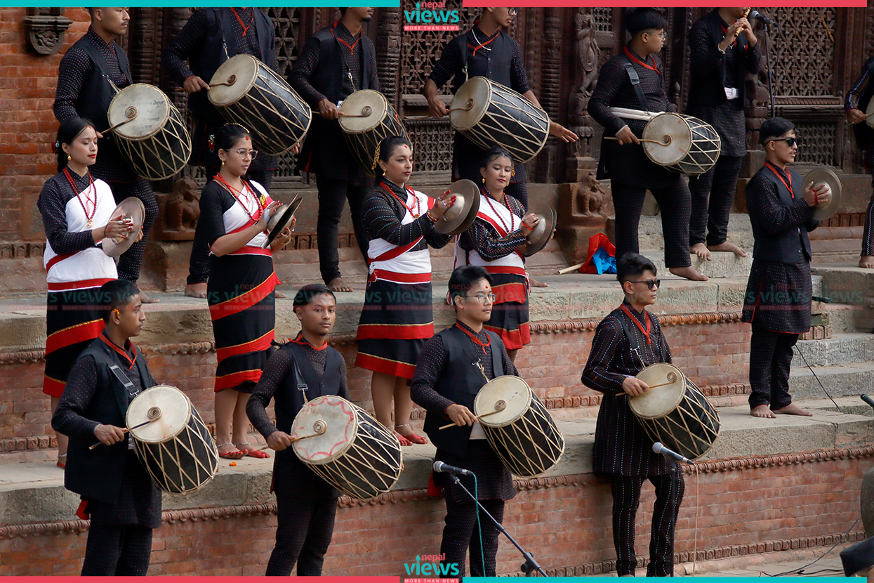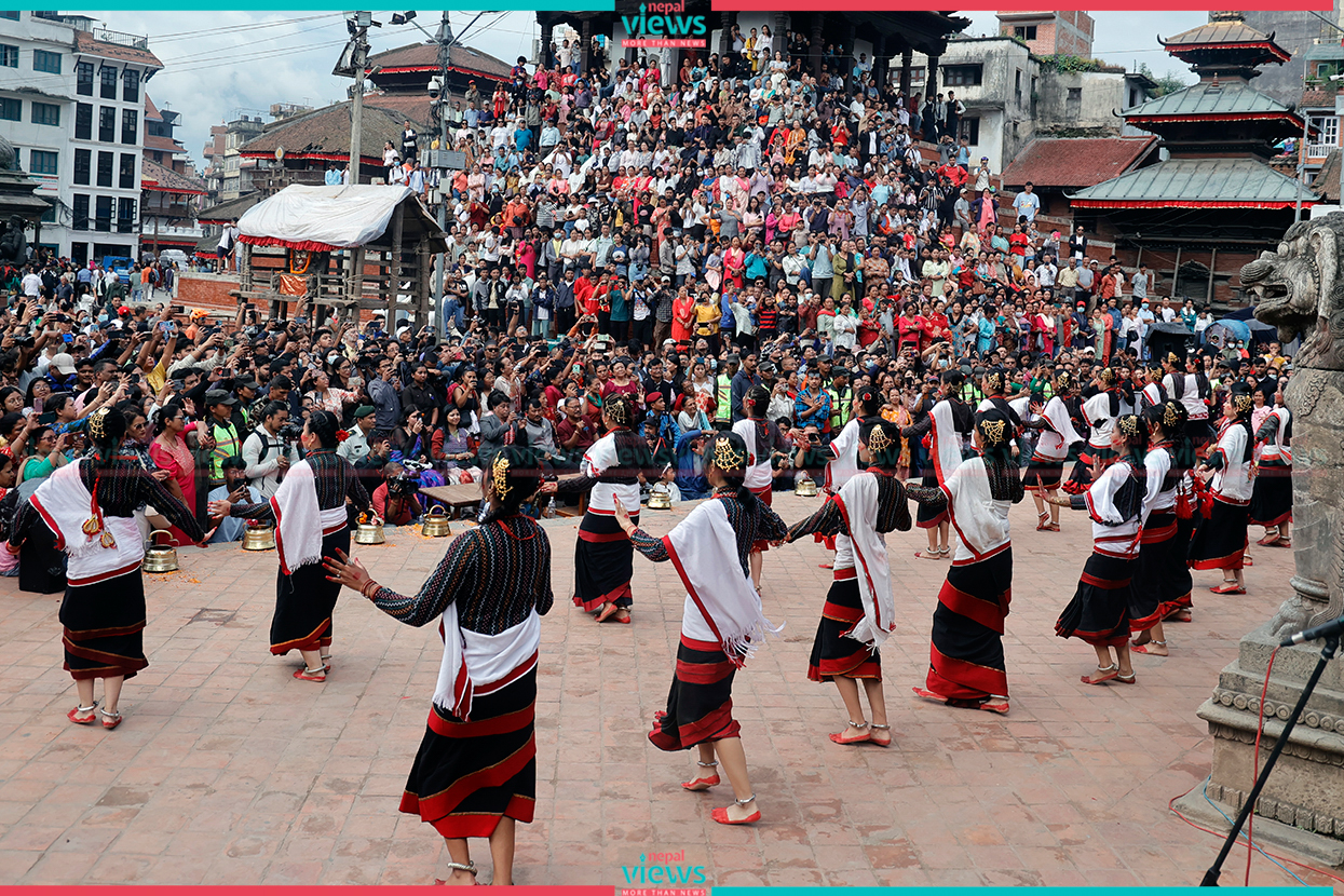 On the first day of Indra Jatra, the Newar community performed the Dhime Dance on the premises of Shiva-Parvati Temple, Basantapur on Sunday.