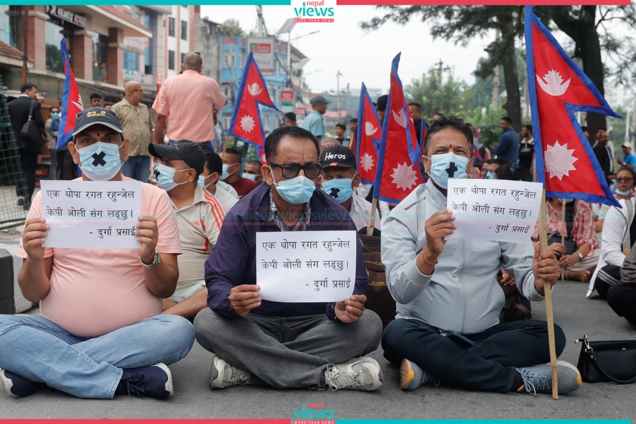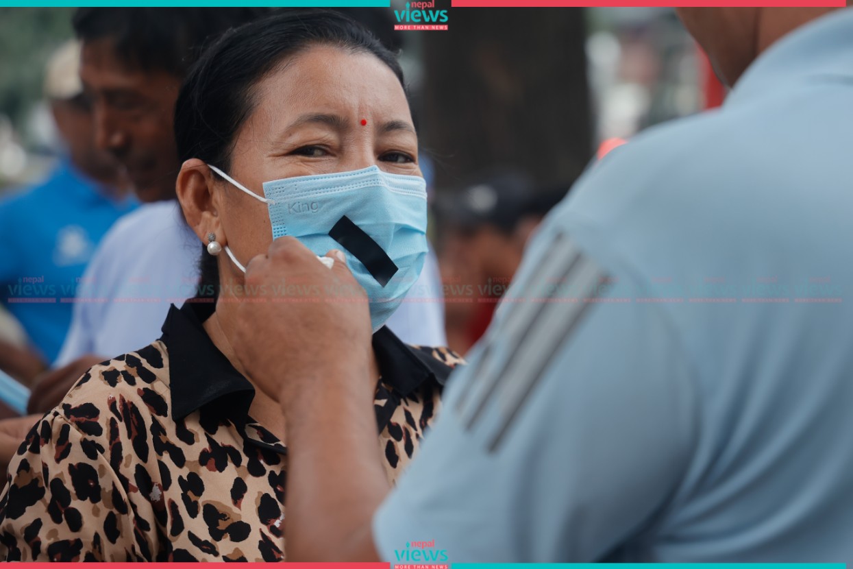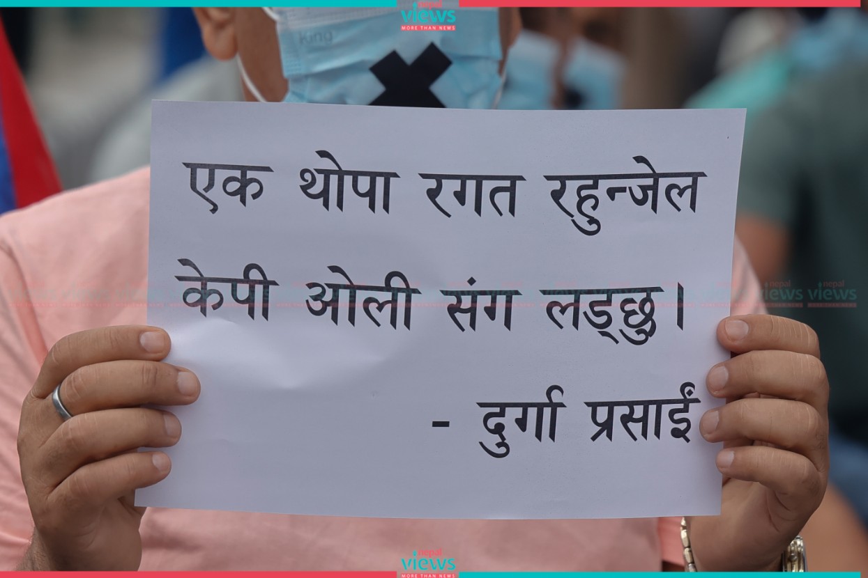 Kathmandu: The supporters of medical businesspeople Durga Prasai have demonstrated by putting black tape on their mouths.