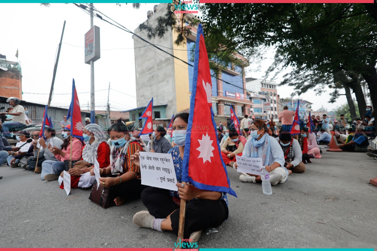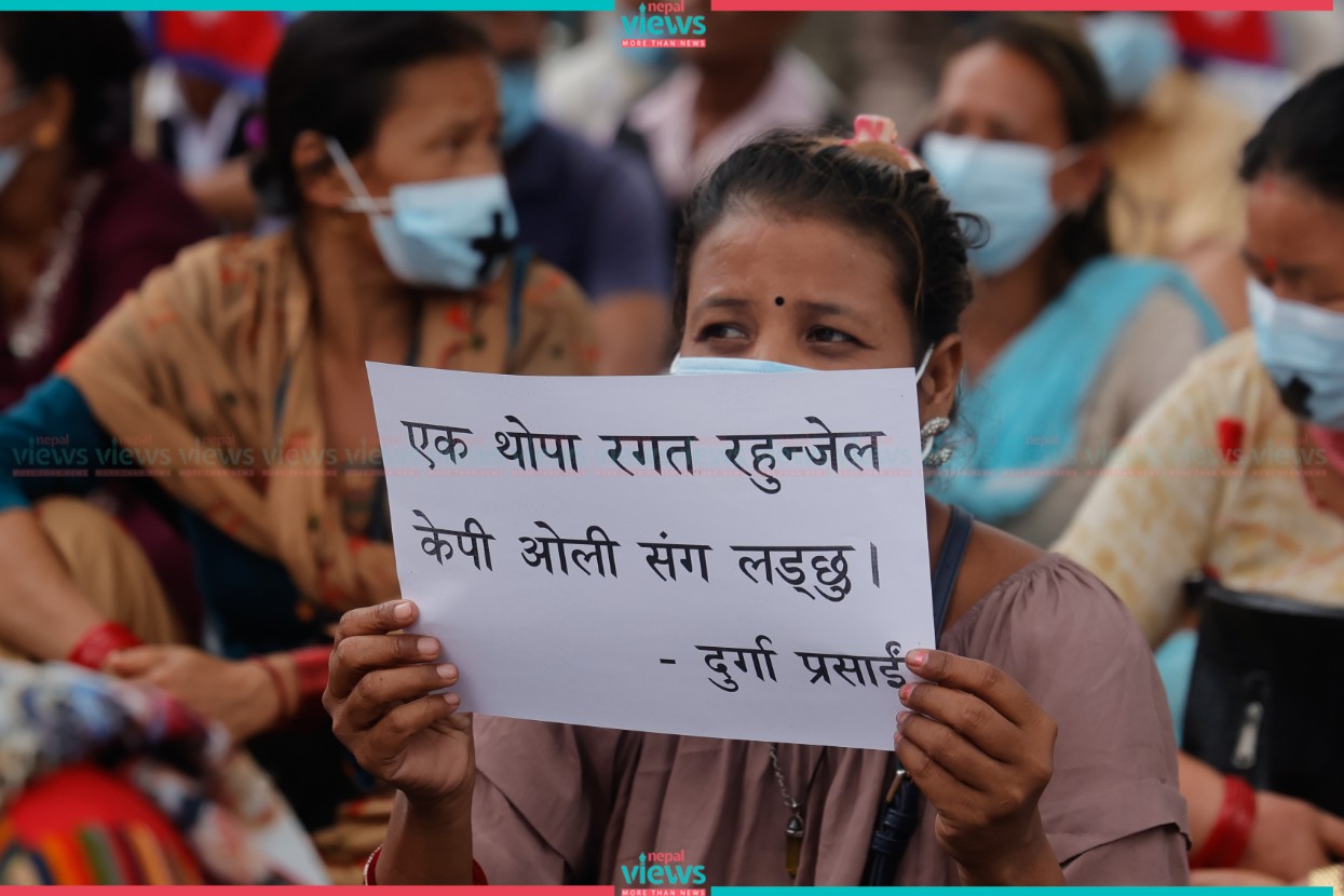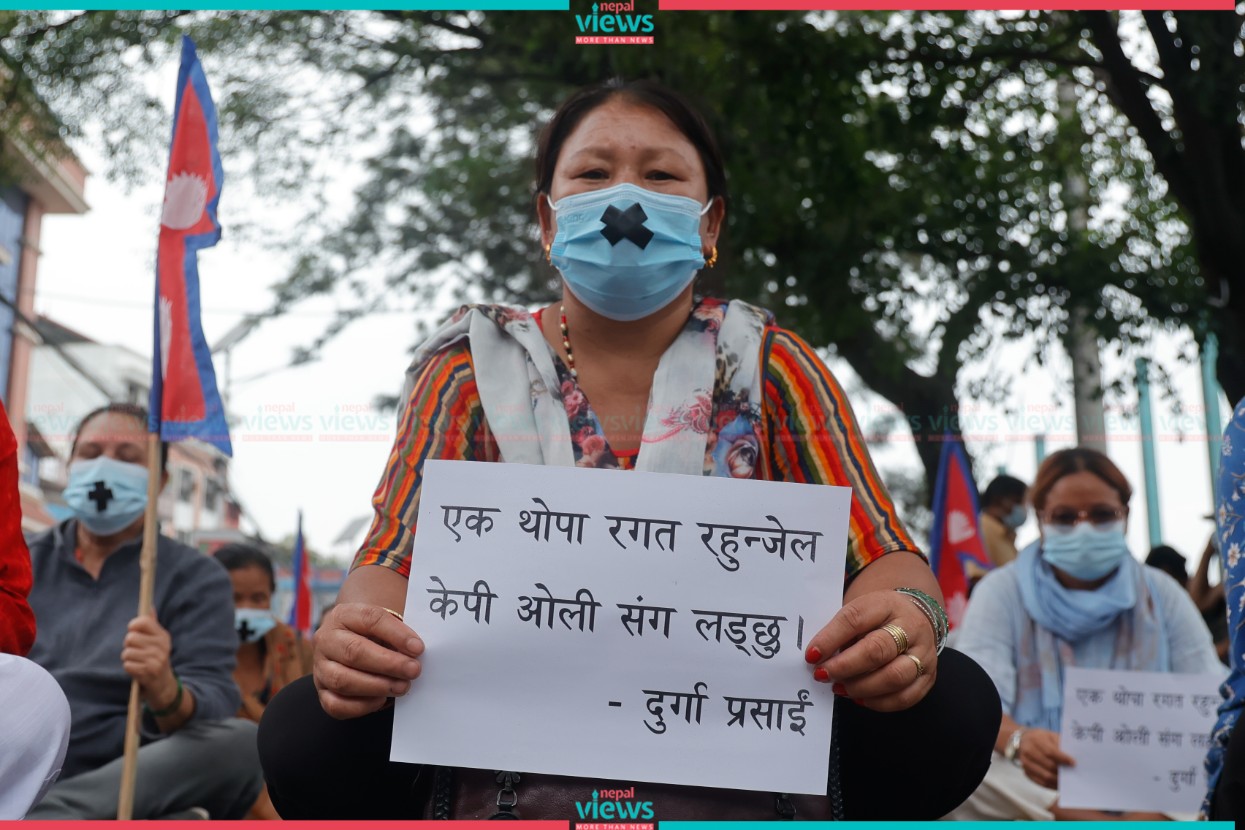Prasai’s supporters demonstrate with black tape over their mouths at Maitighar(Photo Feature)