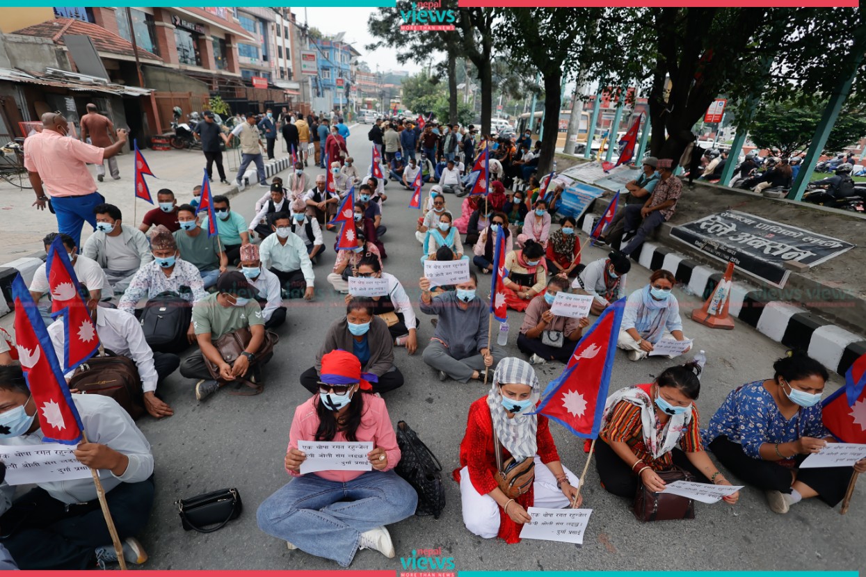 They demonstrated by putting black tape on their mouths at Maitighar on Tuesday. They demonstrated by saying the right to speak was violated. They demanded the unconditional release of Prasai.