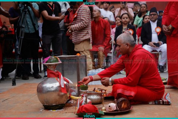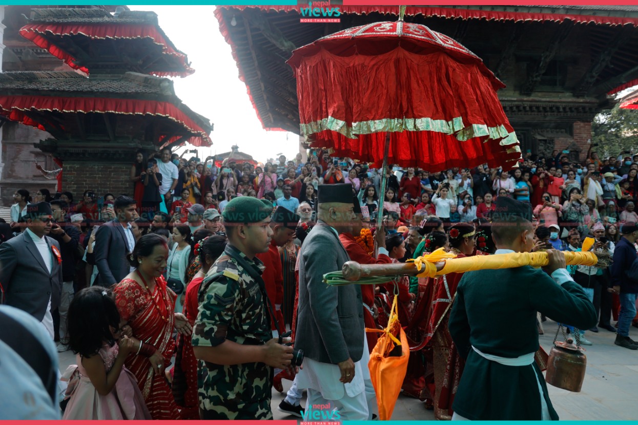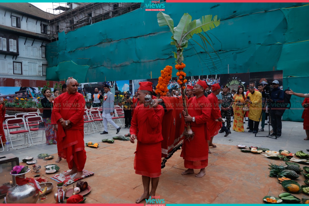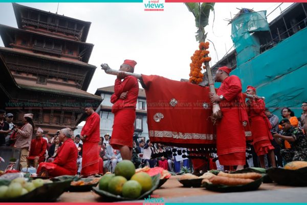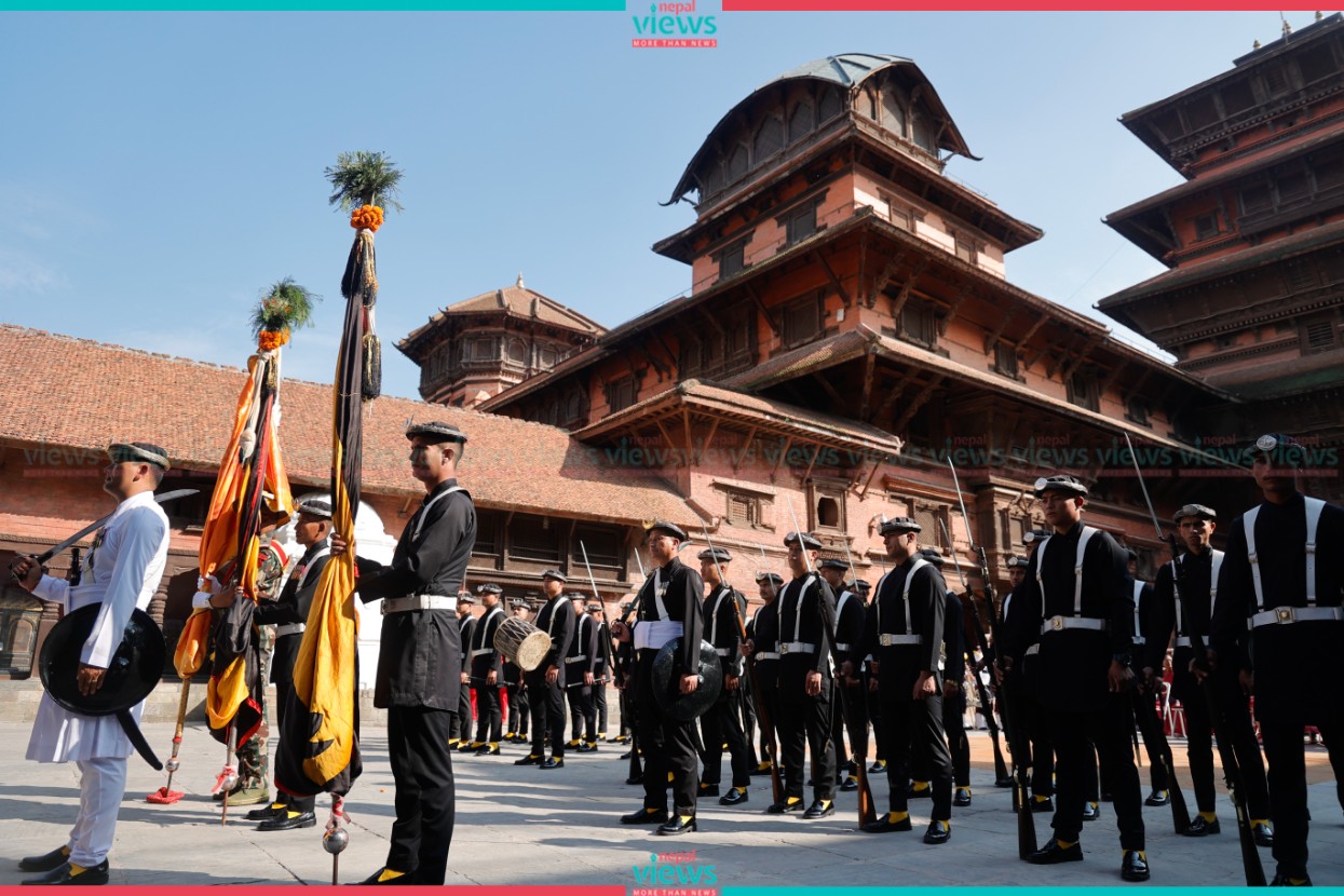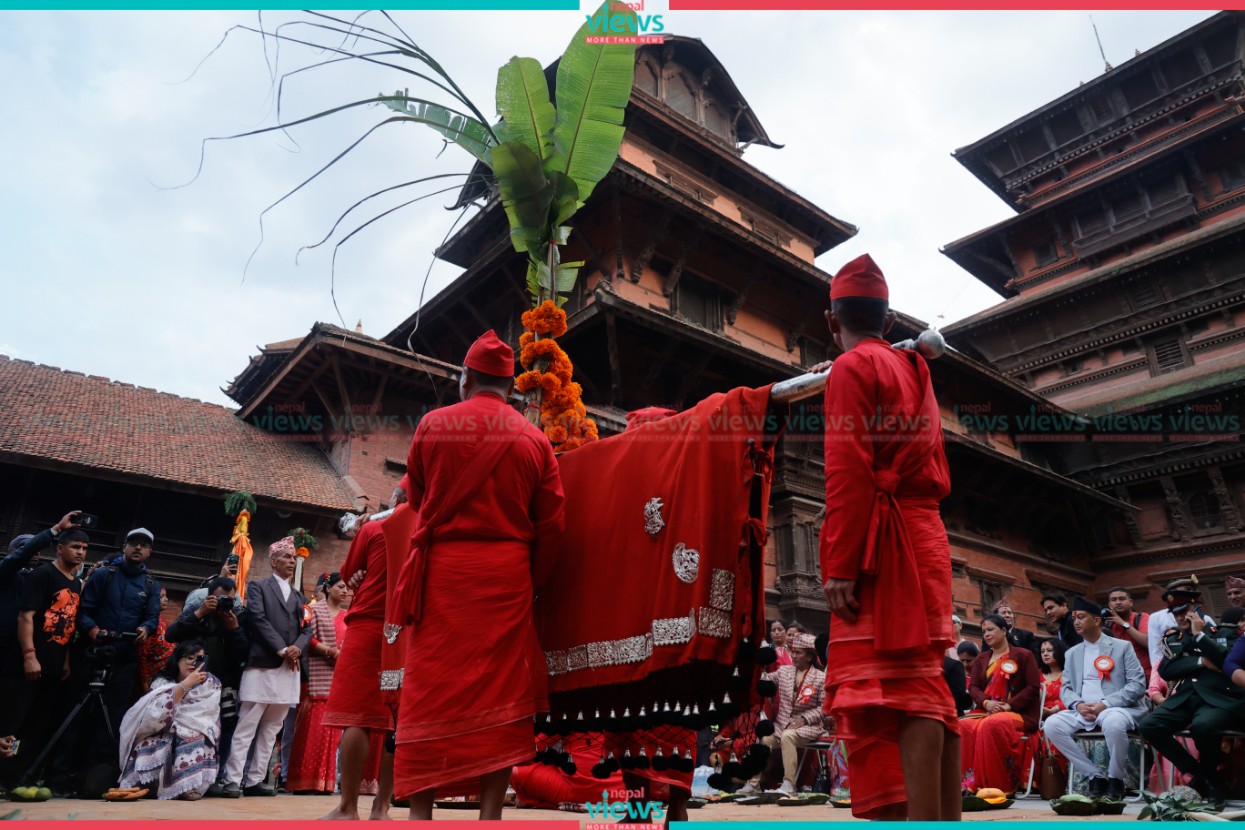 There is a ritual of high-ranking civil service offices, platoons of Guruju, musicians, and cultural dancers bringing the Fulpati from Jamal to Hanumandhoka with a huge celebration.
