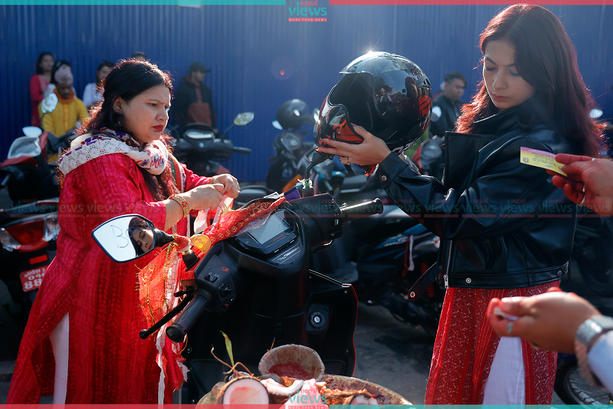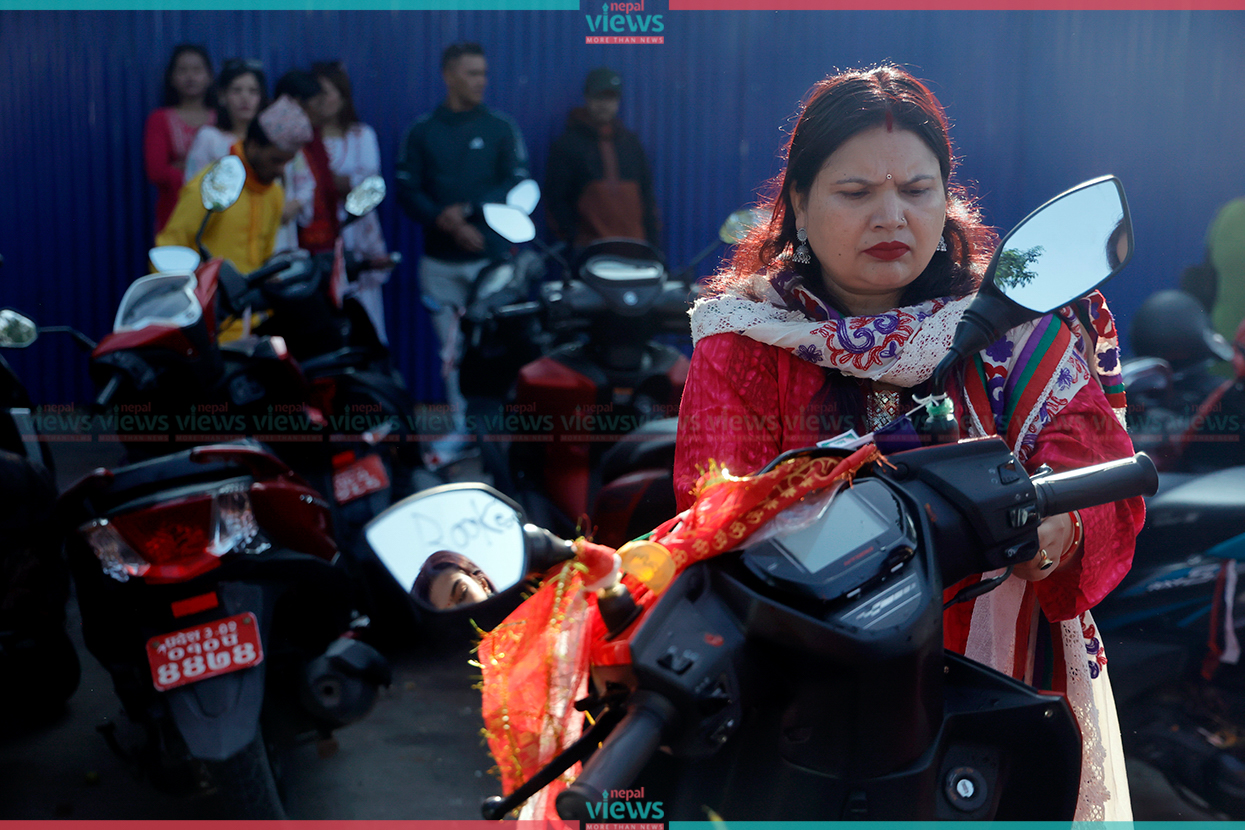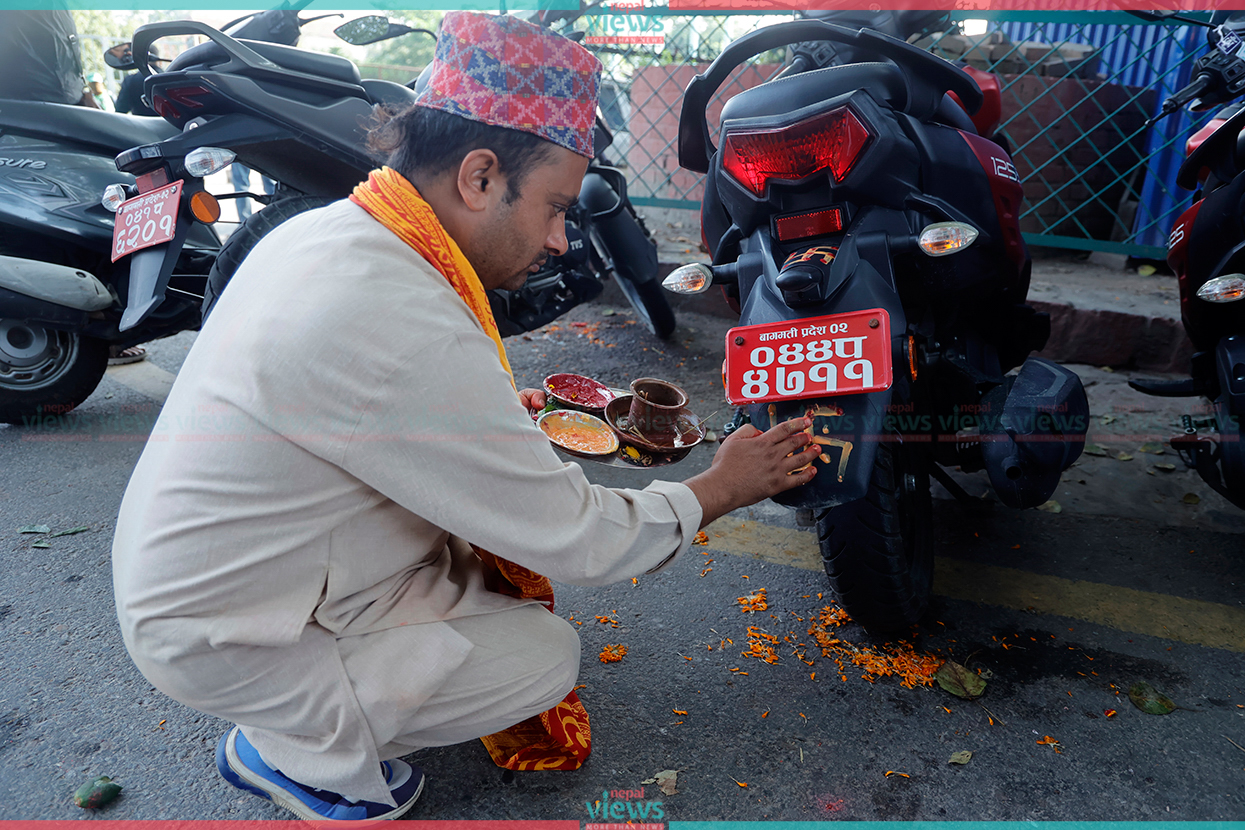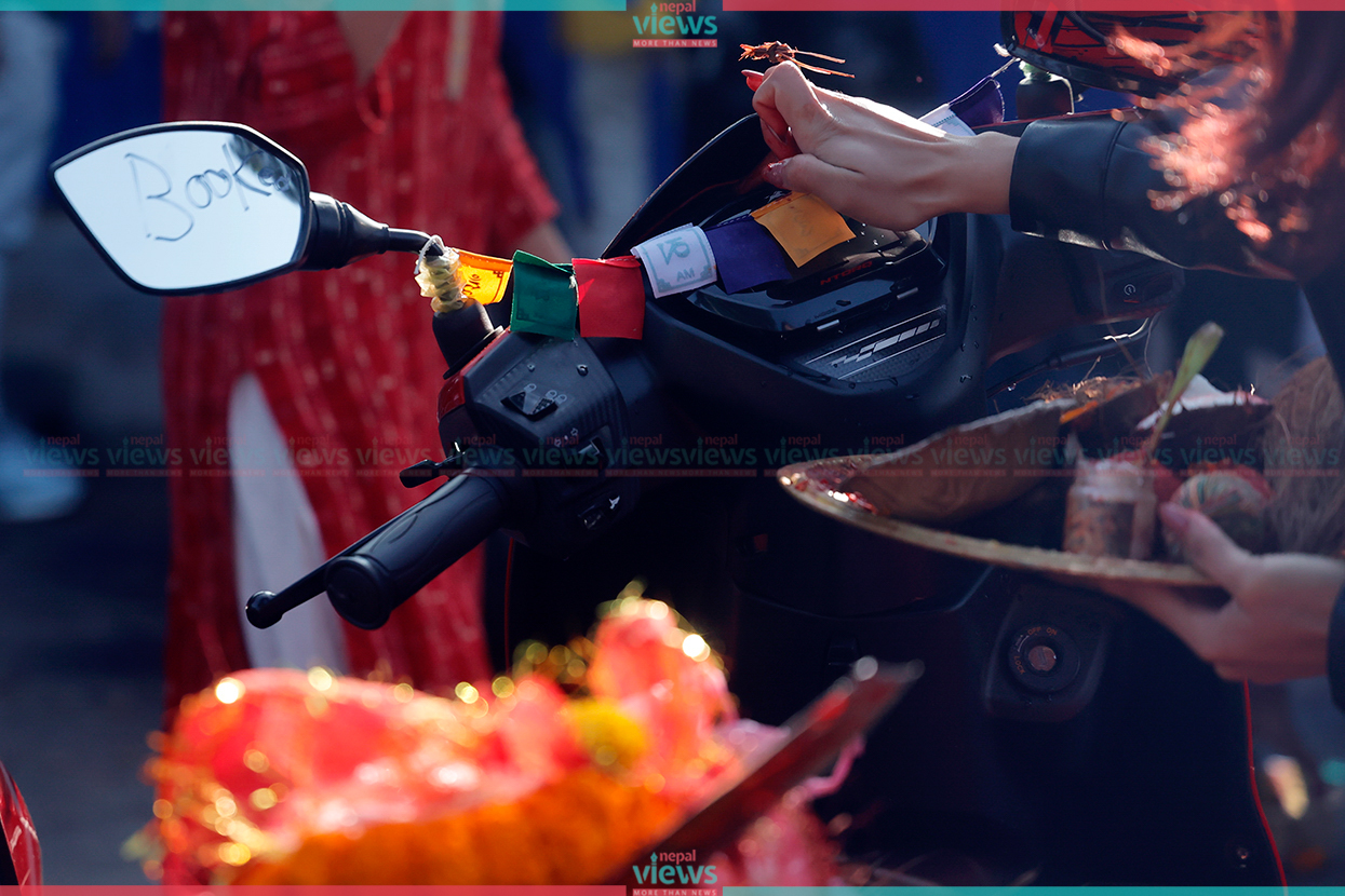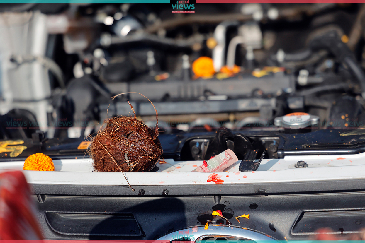 This worship has a special significance in Dashain. People worship their vehicles in the belief that the machinery equipment would work in perfect condition and generate profit.