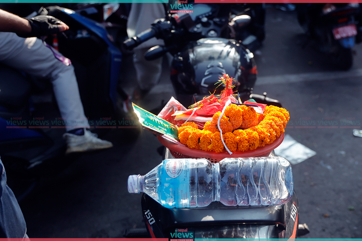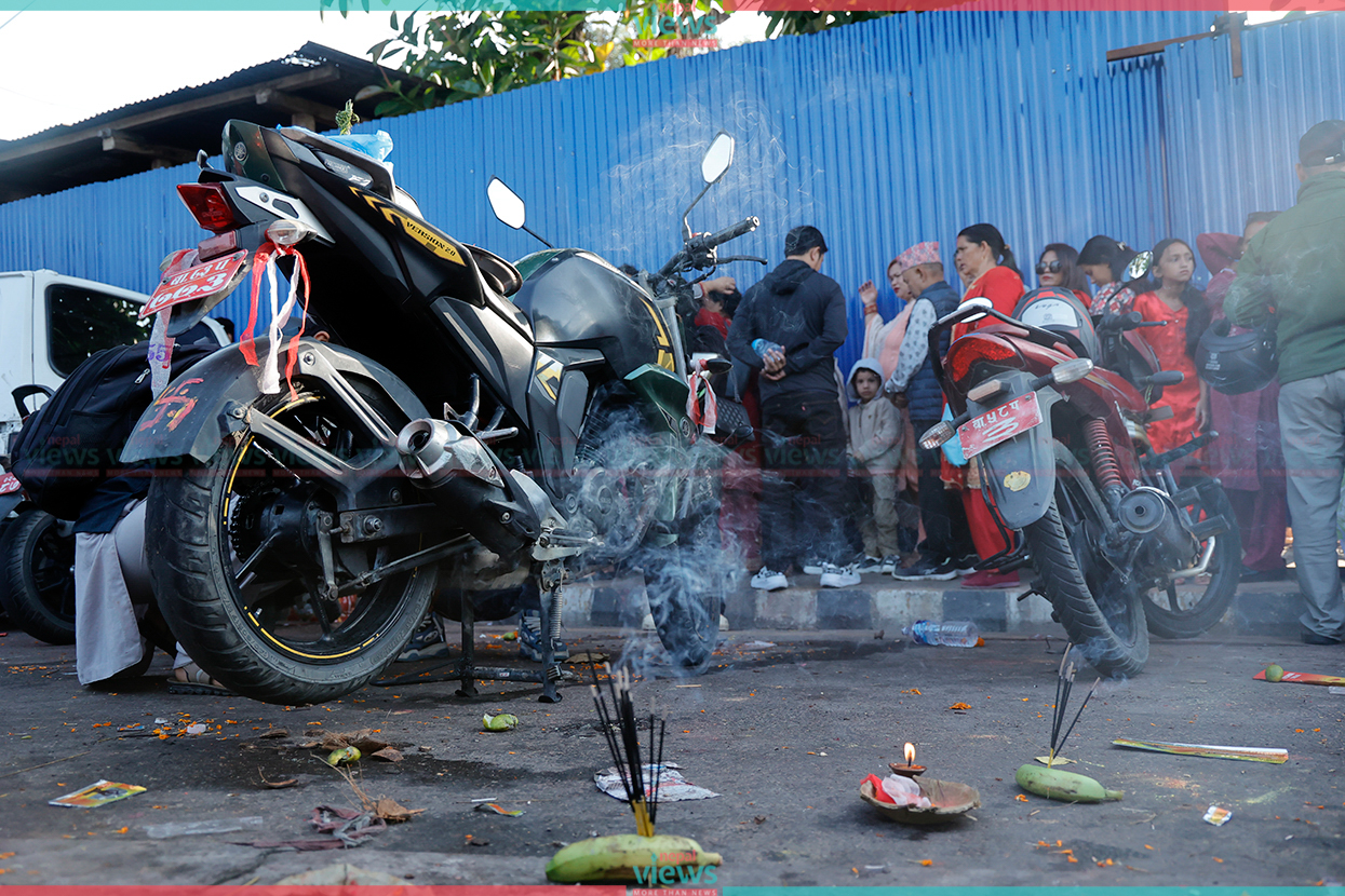 Kathmandu: People have worshipped their vehicles in the Bhadrakali temple. There is a tradition of washing all the tools, equipment, automobiles, and private vehicles to worship on the day of Maha Navami.
