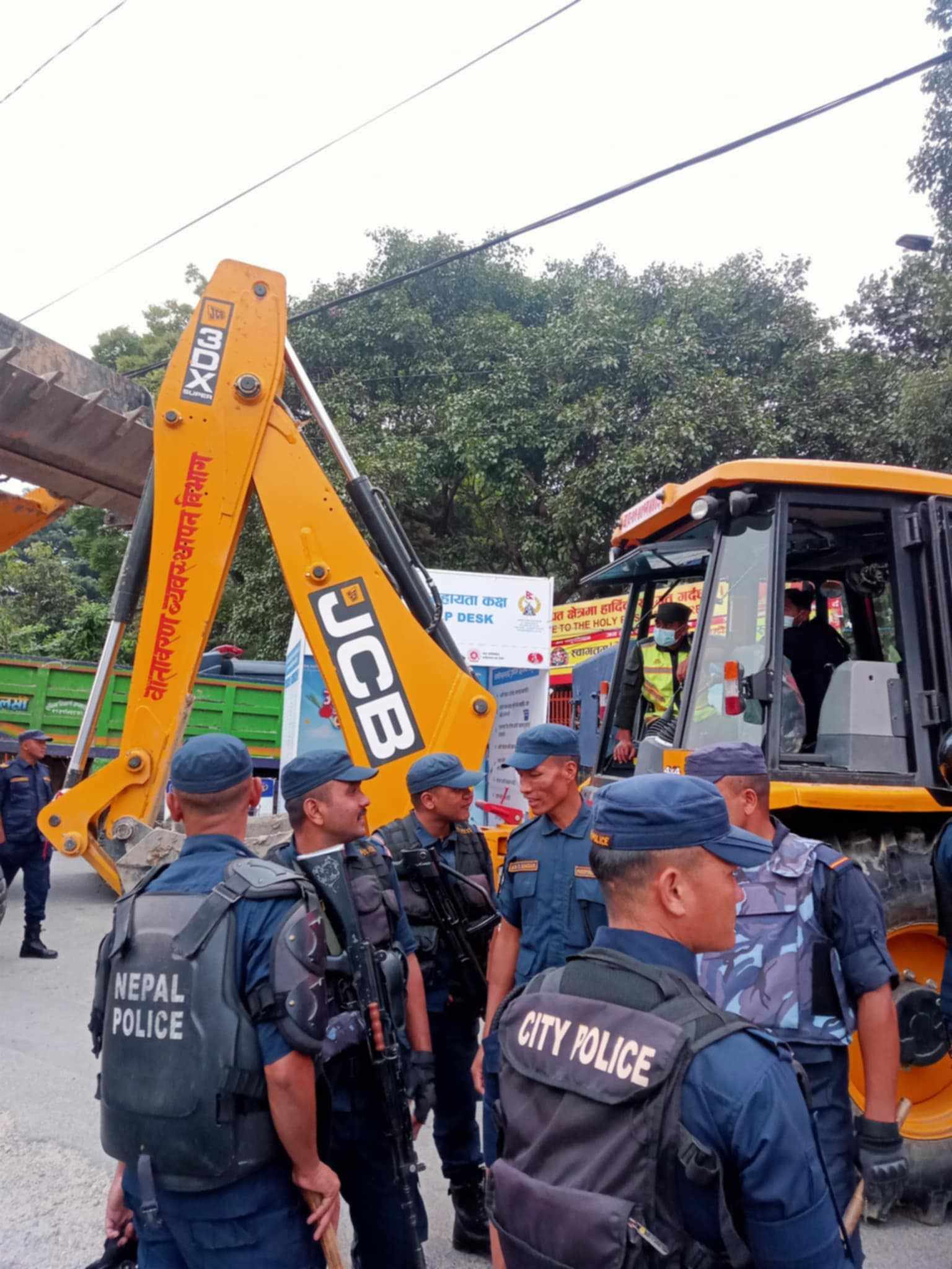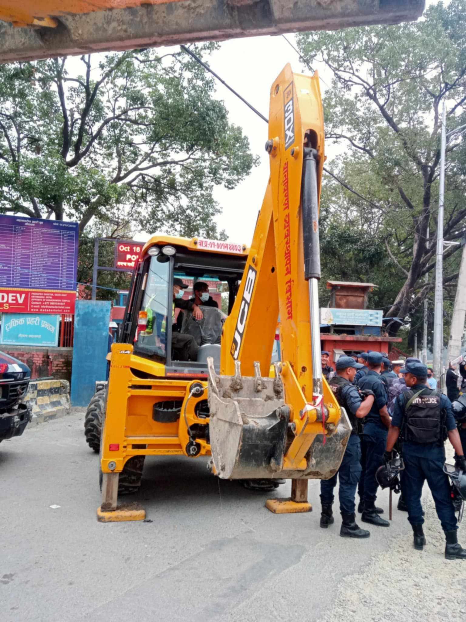 Kathmandu: Nepal Police have detained Kathmandu Metropolitan City (KMC)’s dozer which went to demolish the Dharmshala s' cowshed at Gaushala.
