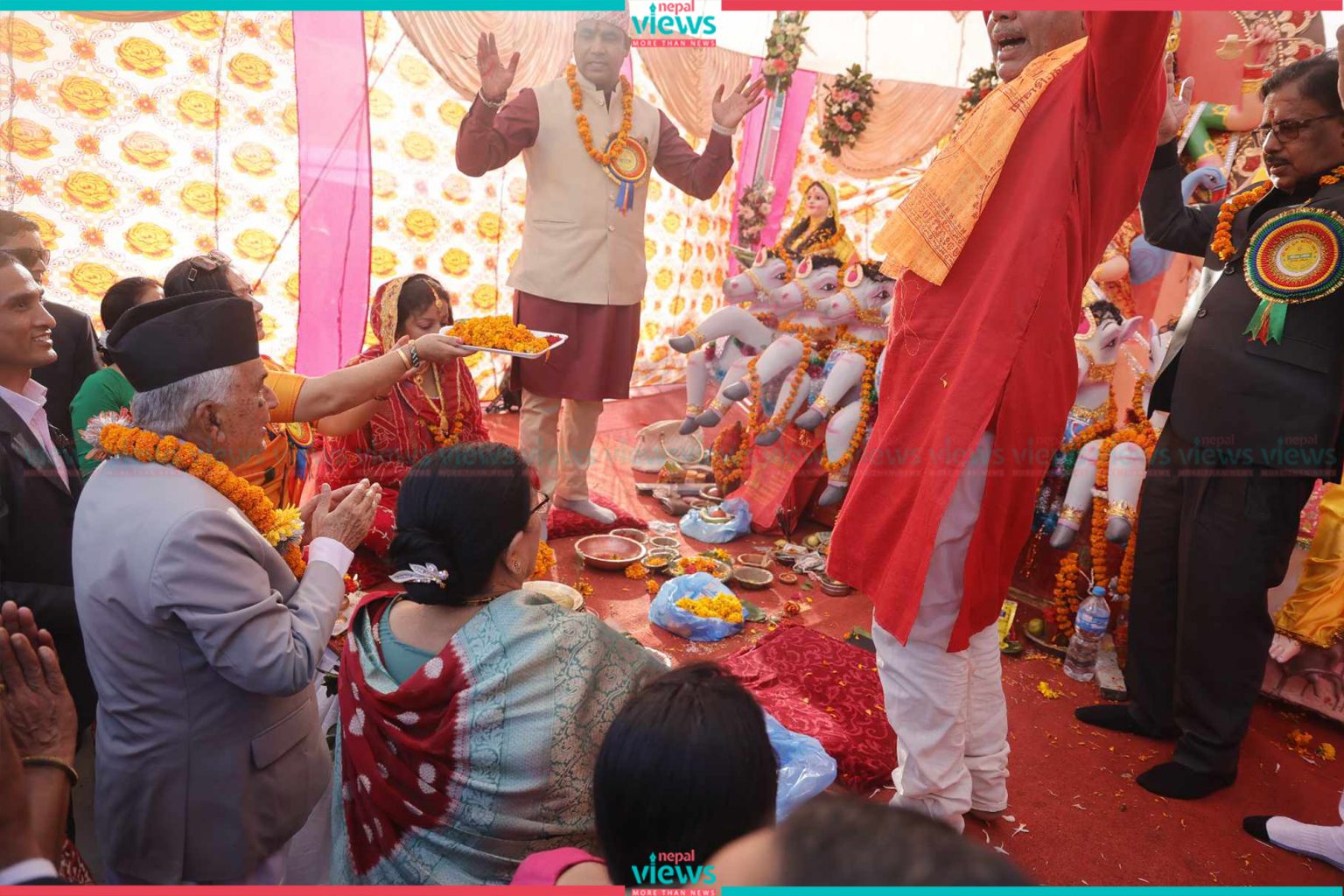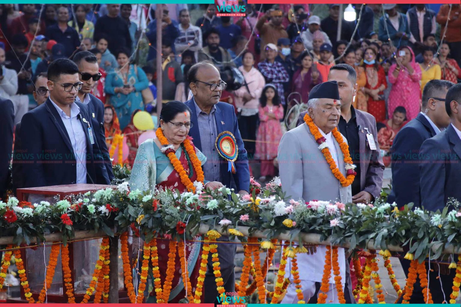 (Glimpses of President Paudel in Chhat Puja at Guhyeshwari)