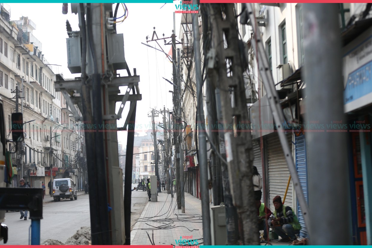 Kathmandu: Kathmandu Metropolitan City (KMC) has begun to remove electric poles and wires at New Road.