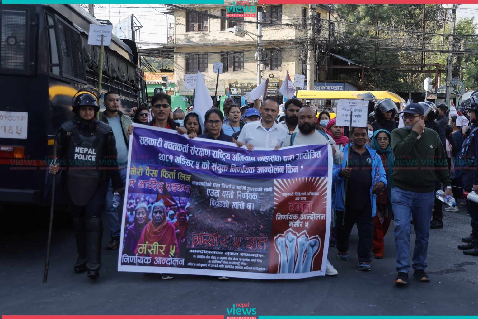 Kathmandu: Cooperative Victims have demonstrated at Maitighar.