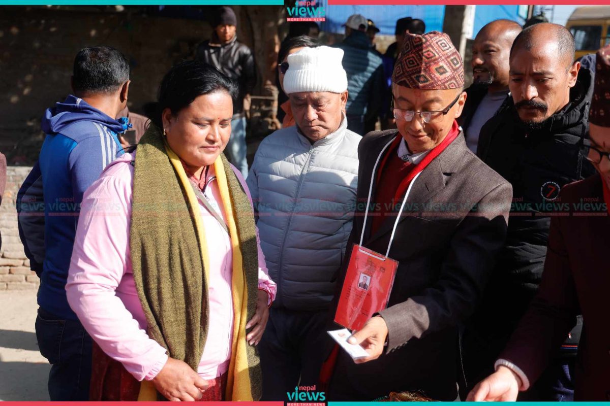 Nepali Congress's Dangol, candidate of Kirtipur’s Mayor, casts vote (Photo Feature)