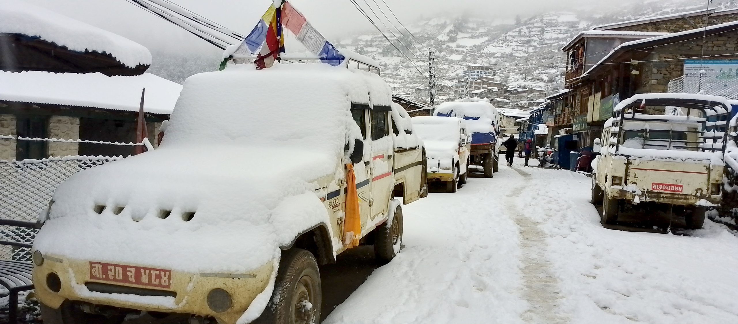 A local Gaugora Bohara, however, said farmers were elated with snowfall for the third time in the district saying the blizzard was beneficial to the crops.