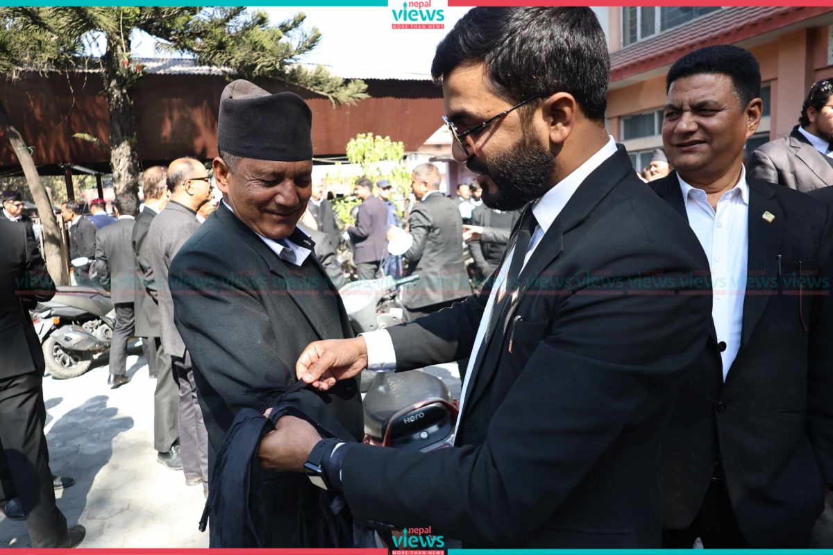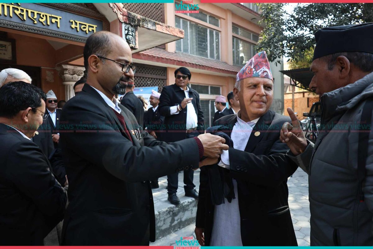 They demonstrated at the Nepal Bar Association (NBA) premises on Sunday. Senior Advocate Tripathi was assaulted at Kathmandu District Court premises on January 15(Magh 2).