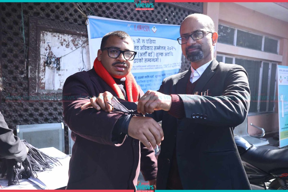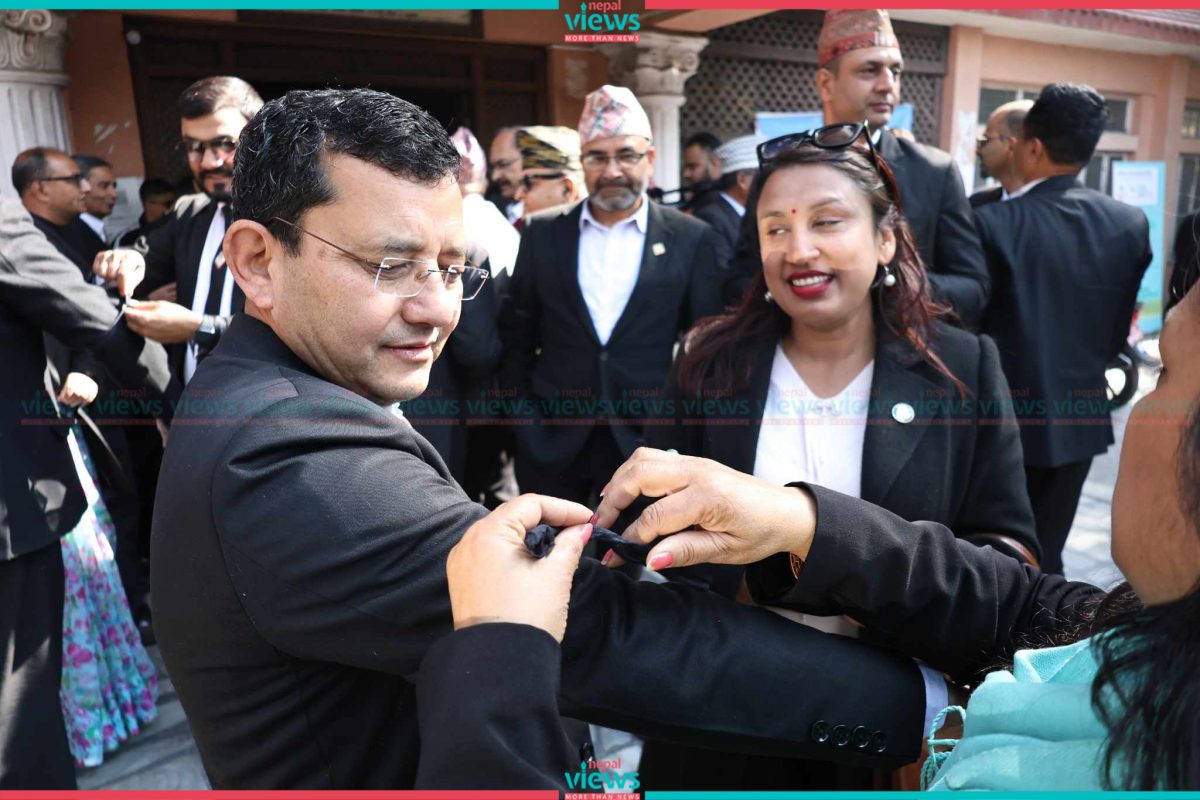Kathmandu: Law practitioners have demonstrated by wearing black ribbons against the assault upon Senior Advocate Dinesh Tripathi.