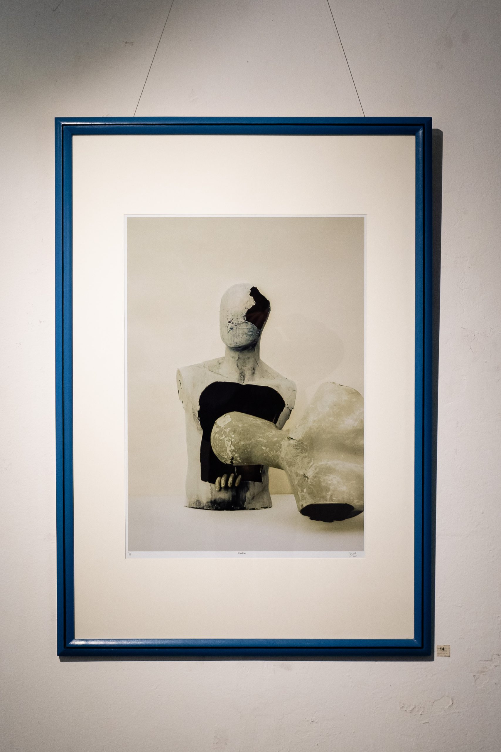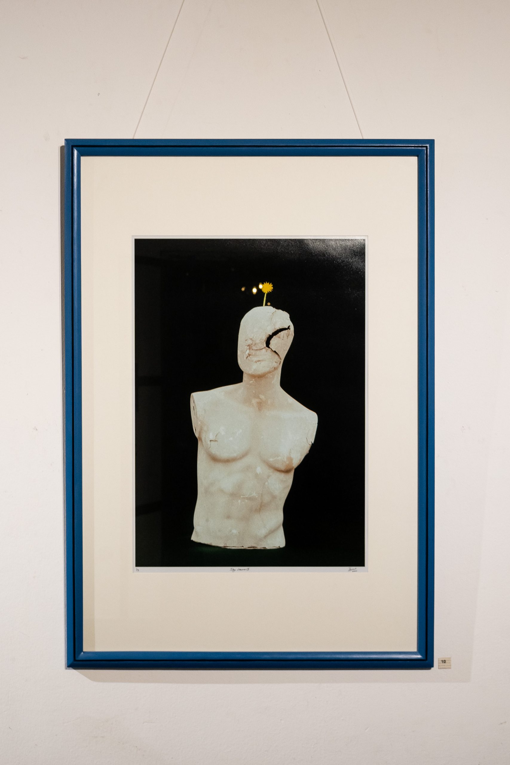One of the standout photographs, titled "Thinker," features a white mannequin with half of its head cut off, placed on a white table against a black background. The empty head of the thinker seems to symbolize the boundless potential of the human mind, which, despite being filled with thoughts, remains a blank canvas for new ideas. The absence of the top half of the head challenges the viewer to ponder the limitations and possibilities of human cognition. As René Descartes once posited, 'I think, therefore I am,' this piece provokes contemplation about the essence of thought and existence, as Descartes highlighted the importance of thinking as the foundation of our being.