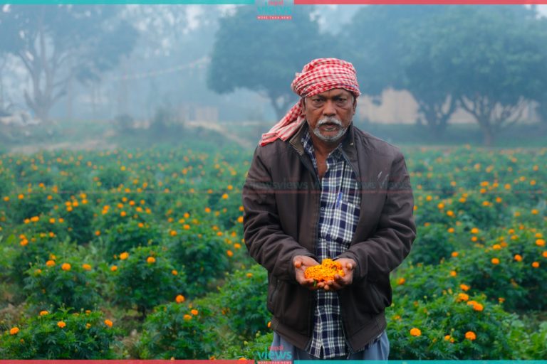 One such farmer is Ramprajat Sah. Sah is from Purnadaha, Mithila Bihari Municipality-2. He has cultivated Marigold flowers commercially on about 8 katthas of his land. The flower is known as "Genda" in the local language.