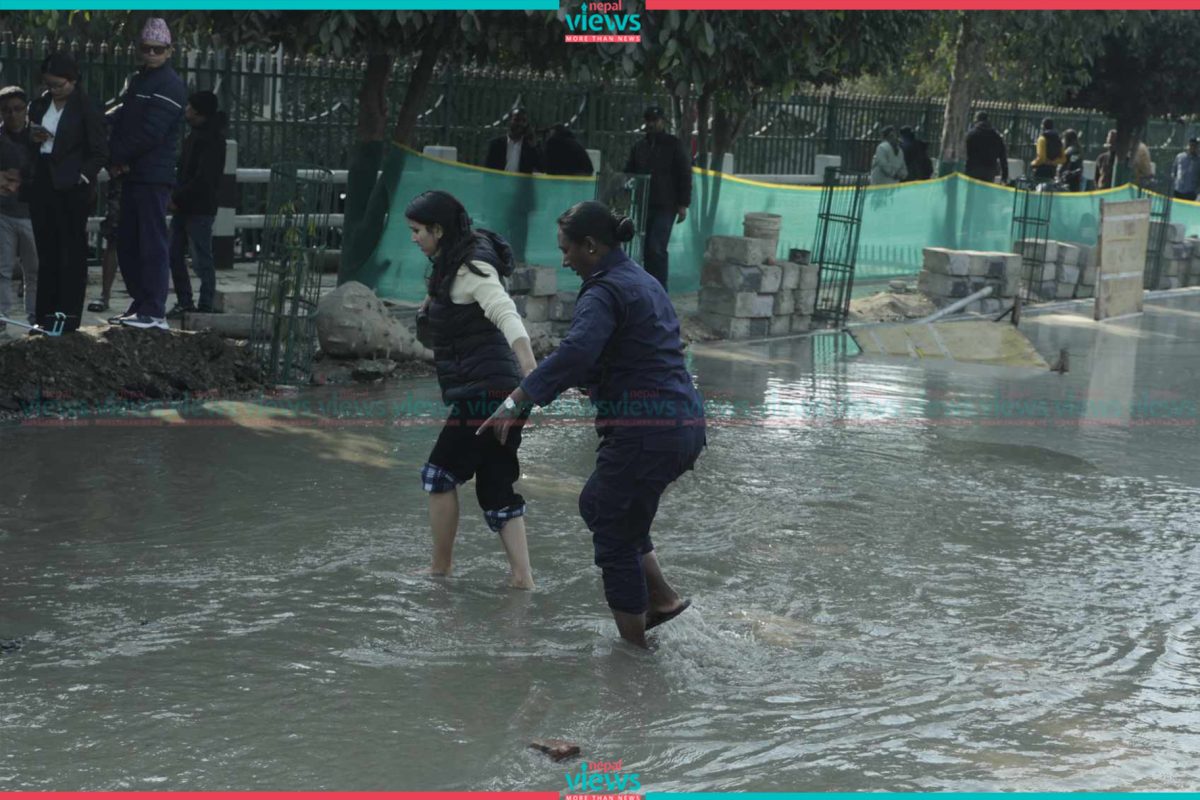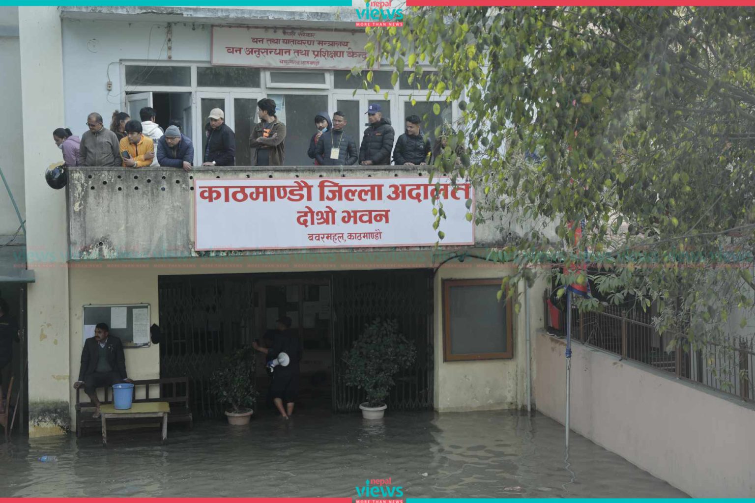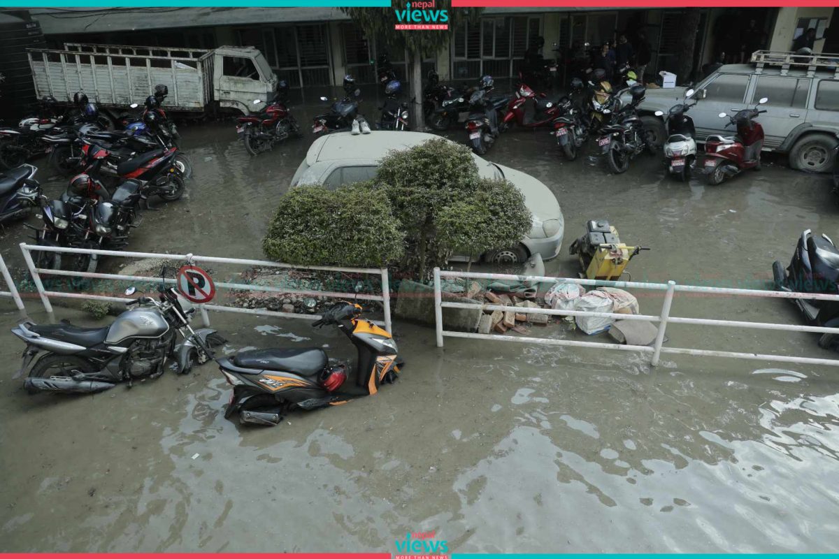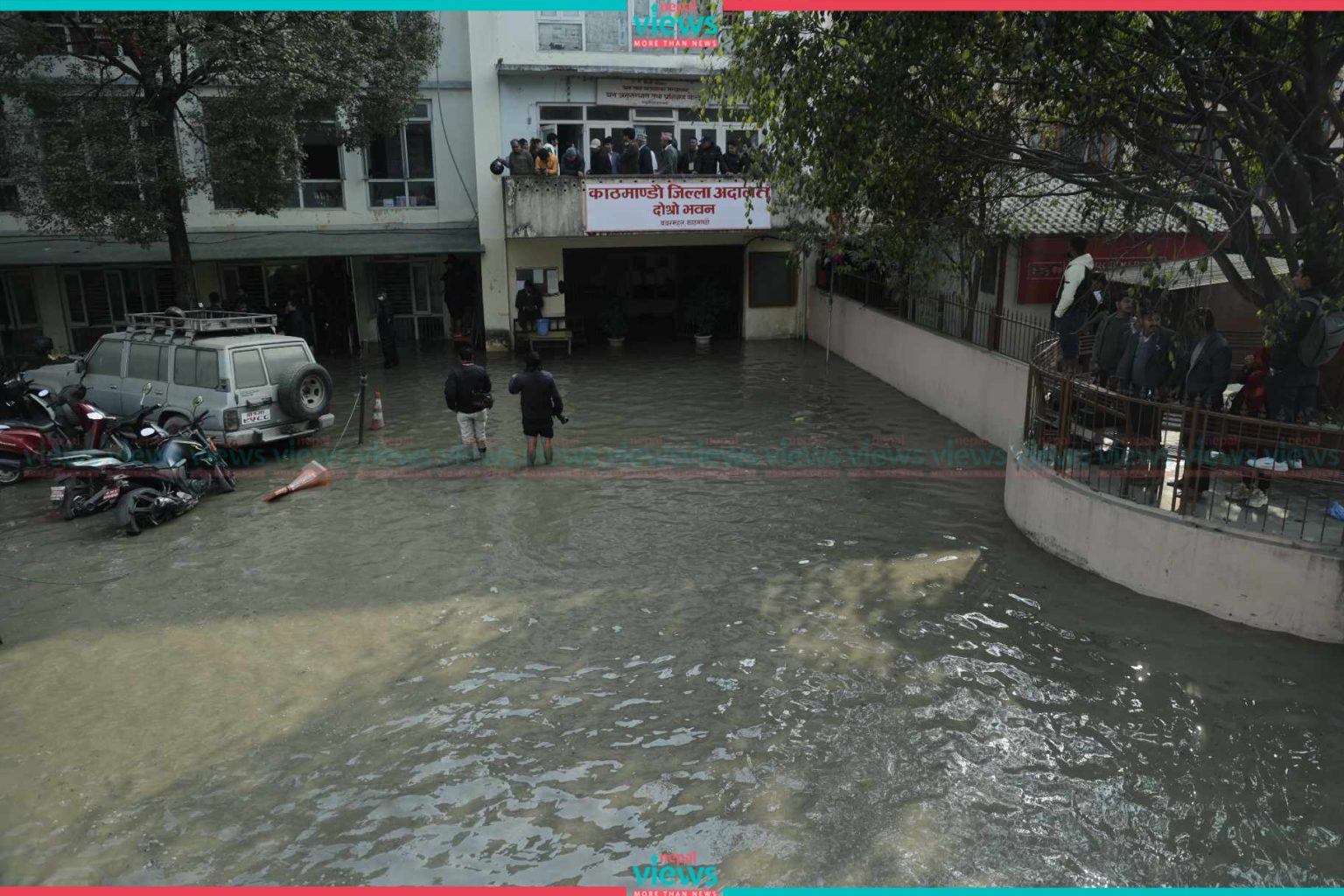 Kathmandu: The bursting of the main pipe of the Melamchi drinking water has submerged the premises of the District Court Kathmandu, Babarmahal.