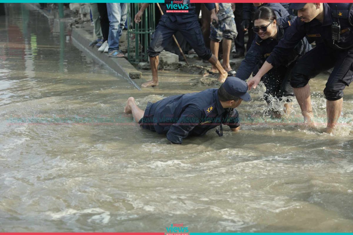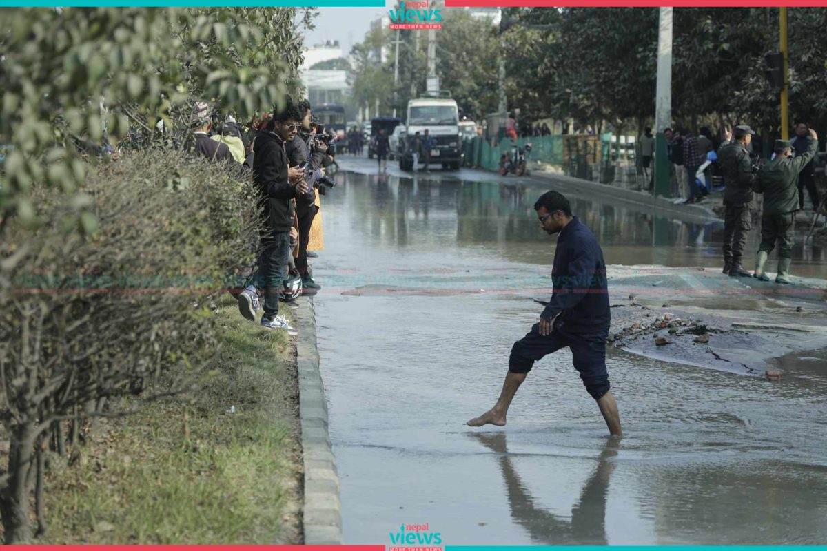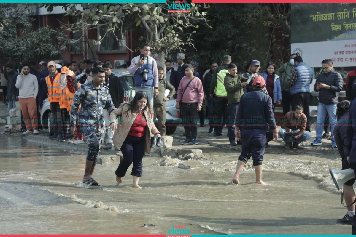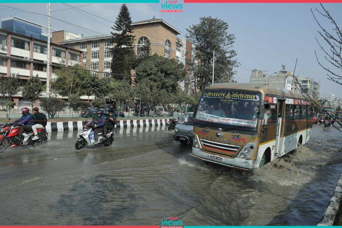Kathmandu: The bursting of the main pipe of the Melamchi drinking water has submerged the premises of the District Court Kathmandu, Babarmahal.
