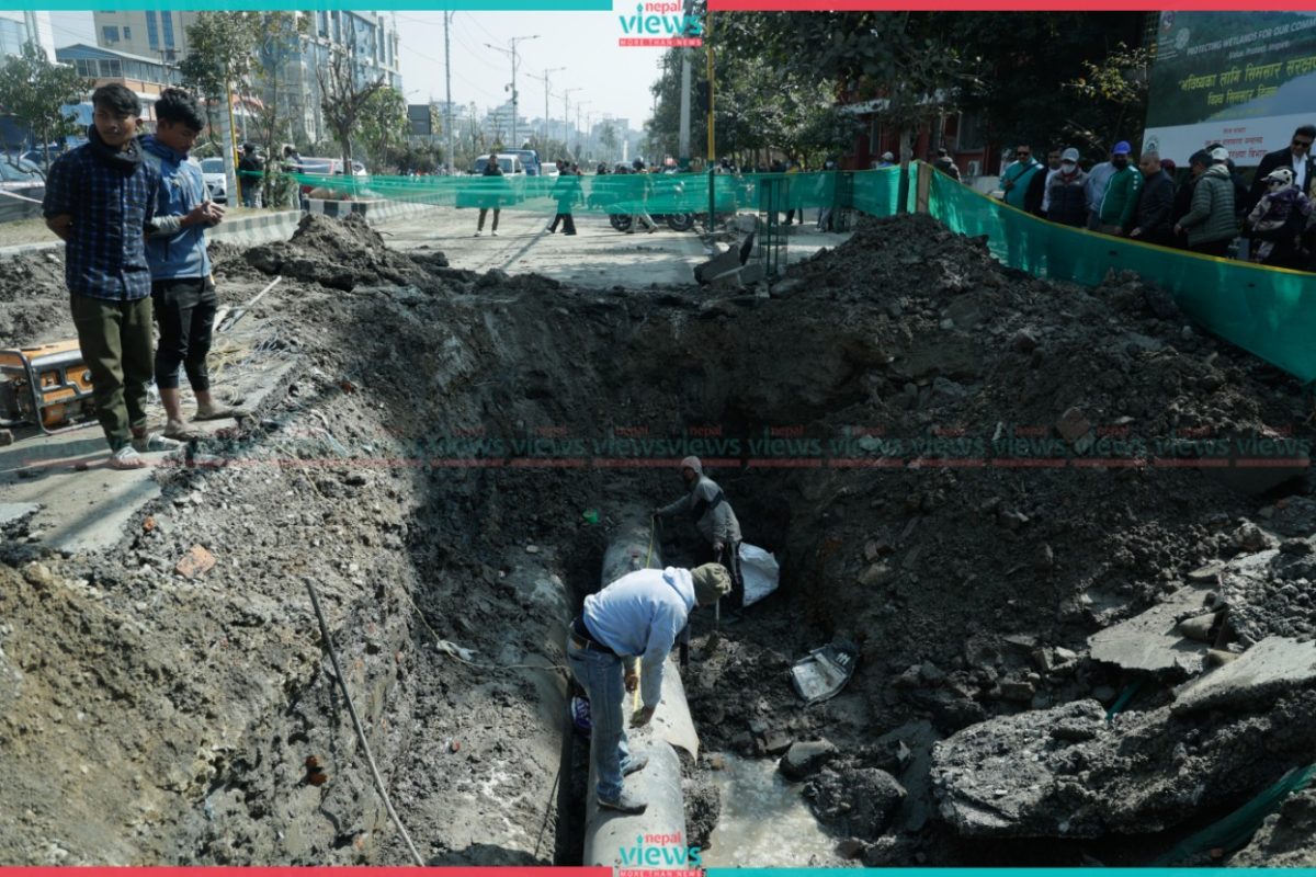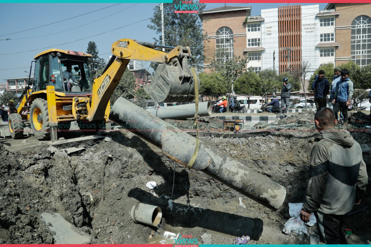 Kathmandu: The repair of the Melamchi water pipeline has been ongoing in full swing at Babarmahal.