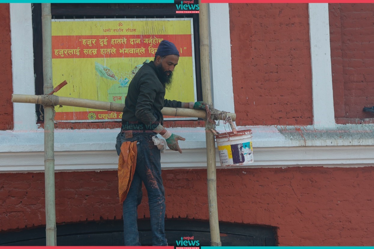 Kathmandu: With the approaching special festival of Hindus, Maha Shivaratri, painting, and renovation work at the Pashupatinath premises has taken its pace.