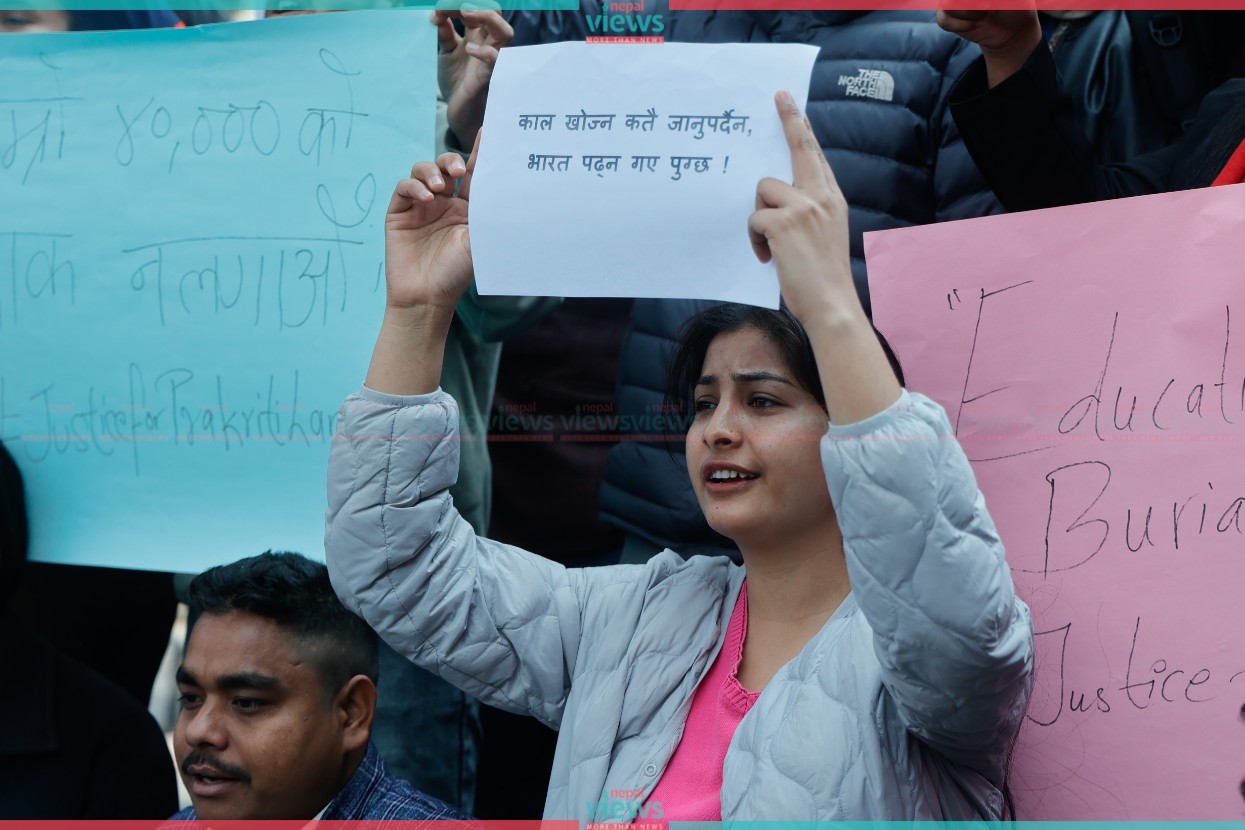 Kathmandu: A demonstration has been organized, demanding justice for Nepali student Prakriti Lamsal, who was found dead in the hostel of Kalinga Institute of Industrial Technology (KIIT) in Odisha, India.