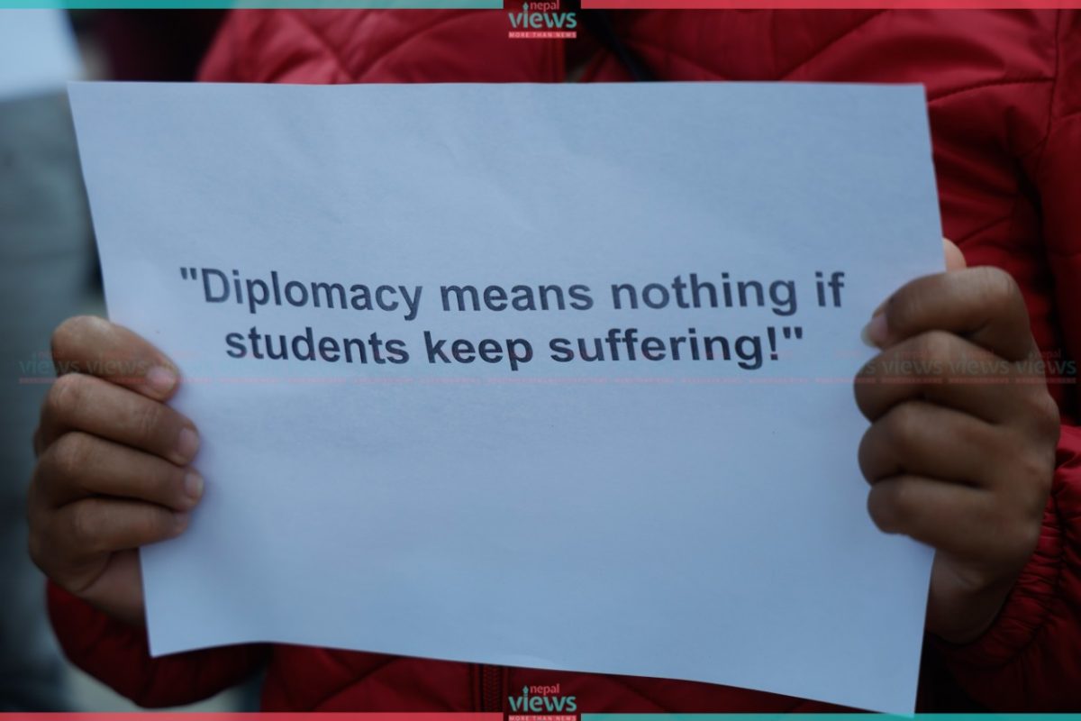 The demonstrators questioned the existence of the two-thirds majority of the government. They were enchanting slogans like "One has to go nowhere but India to seek Death", "Diplomacy means nothing if students keep suffering!", and "Stop Harrasment. It's not a compliment. It's a Harrasement."