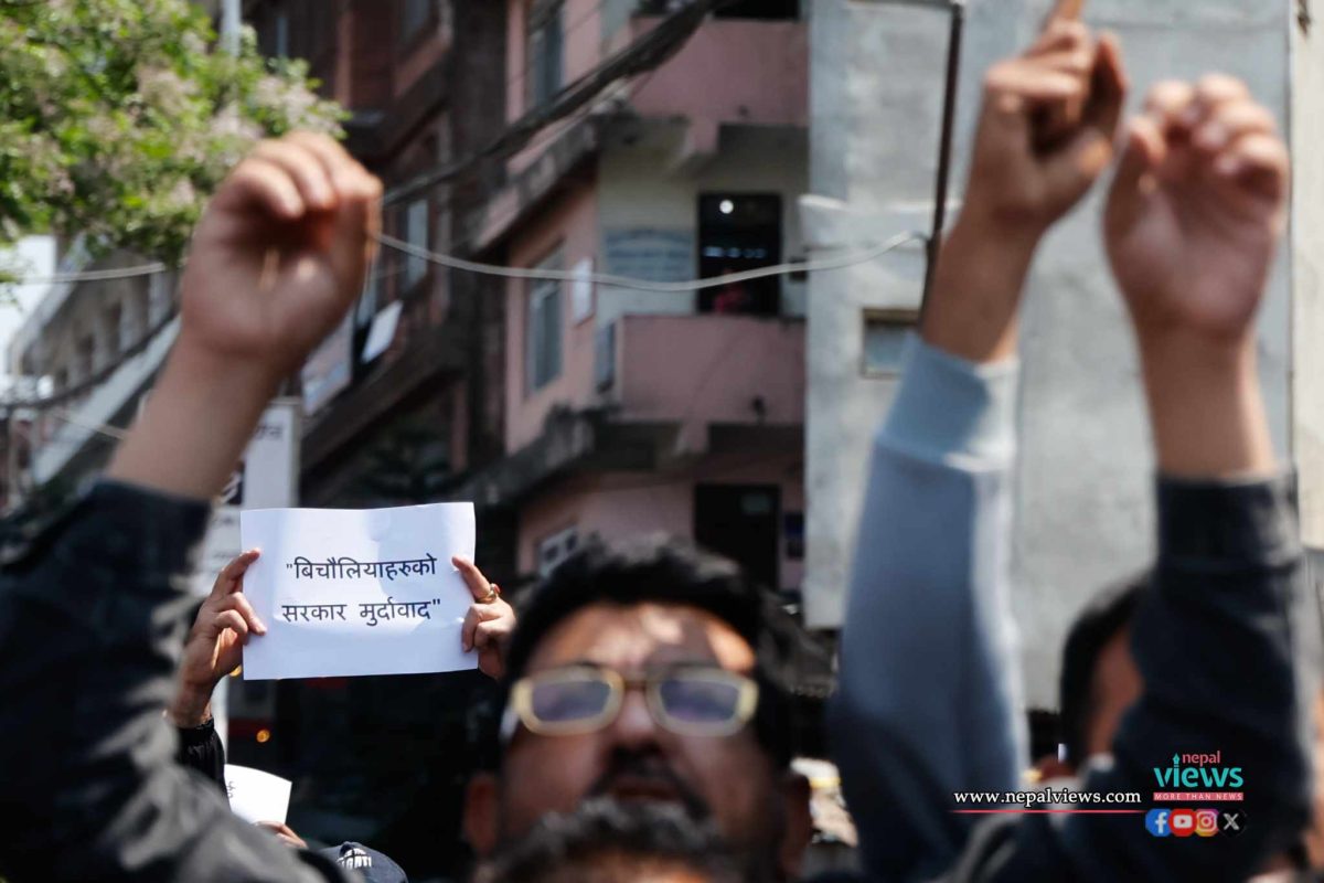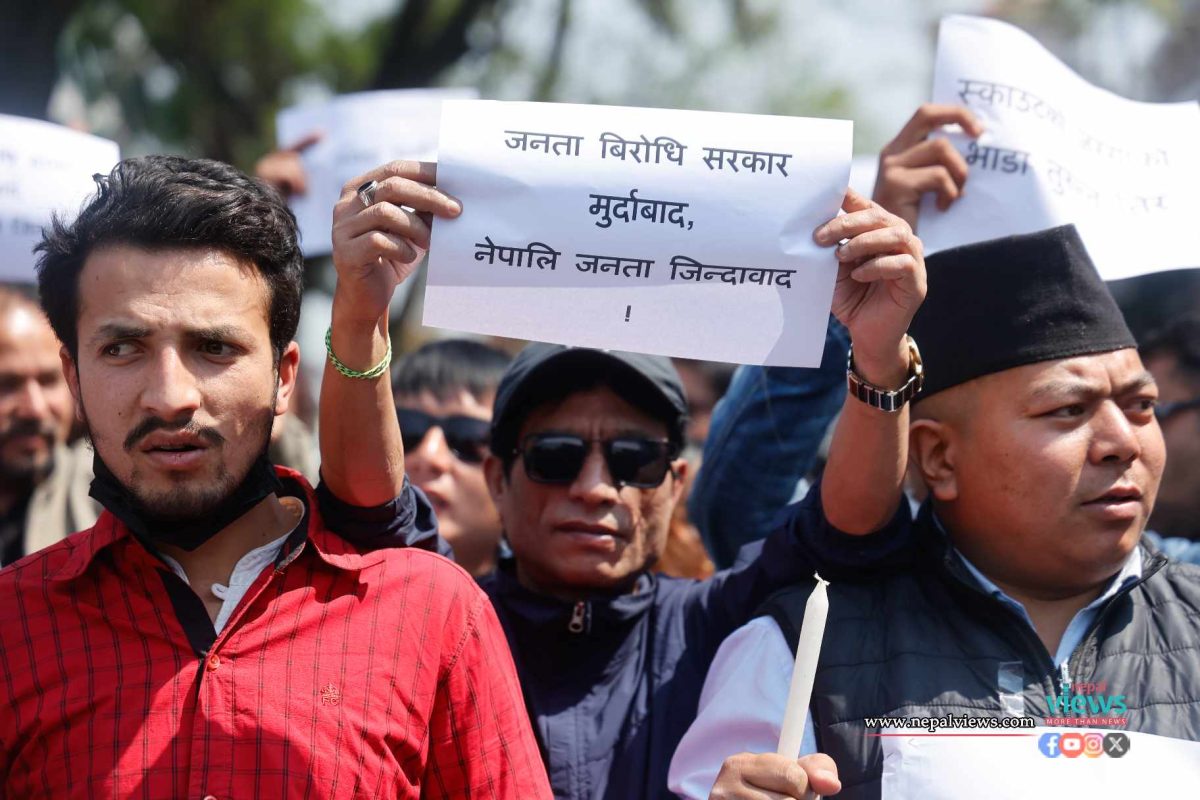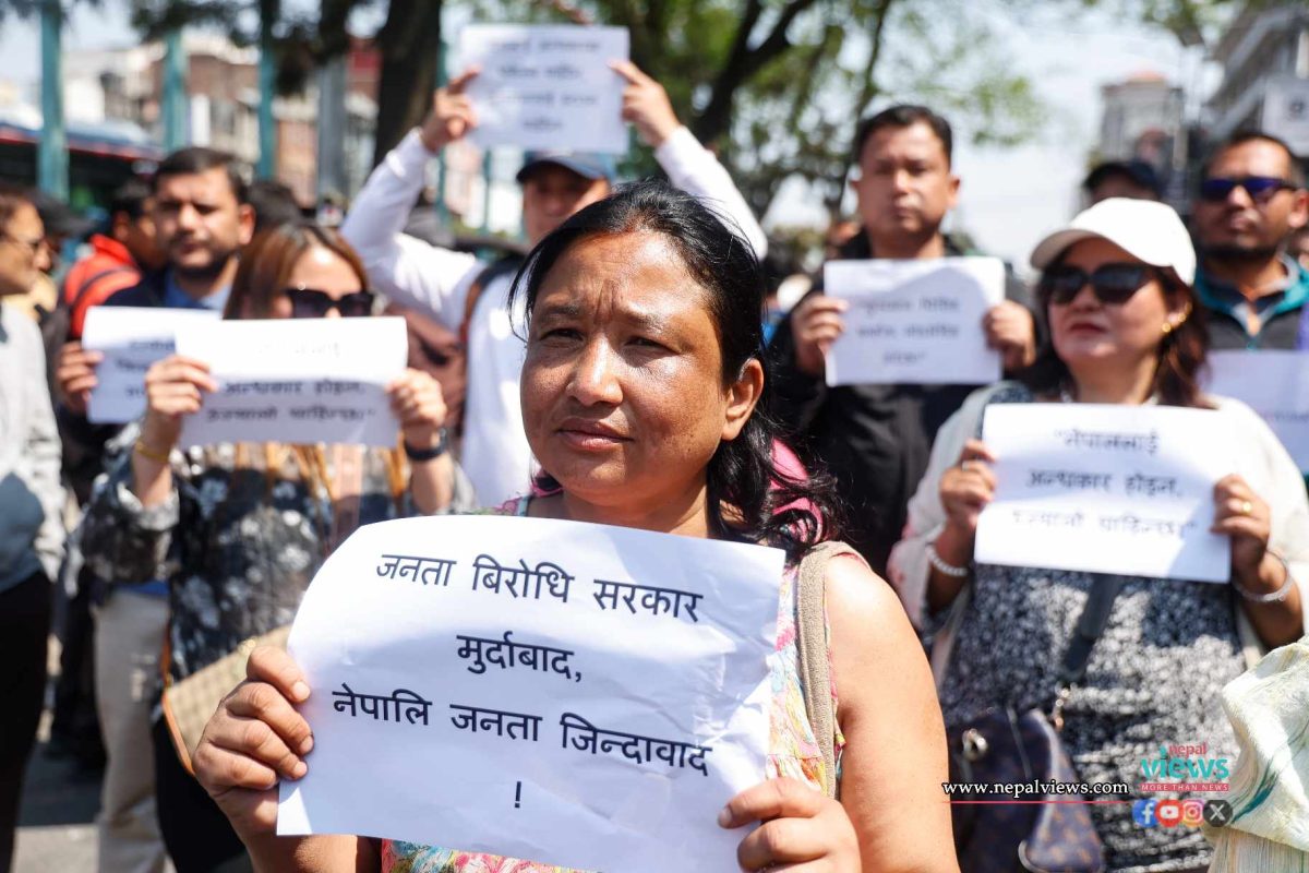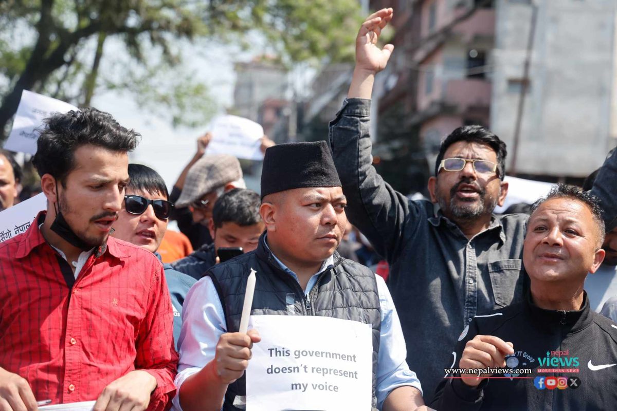 An organization called Nepal Janata organized a demonstration at Matighar Mandala on Tuesday. Participants chanted various slogans while demonstrating against the dismissal of Ghising.