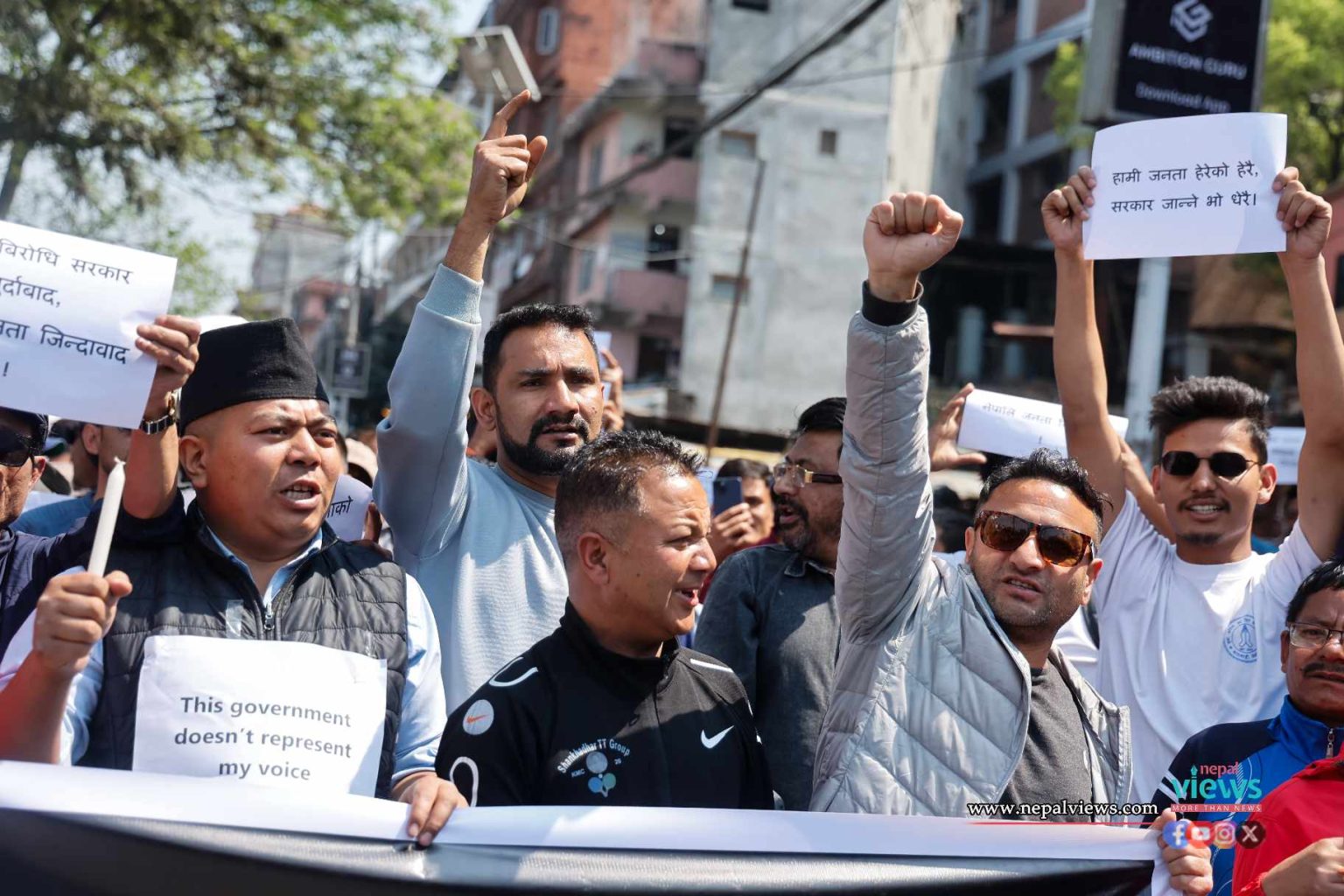 Participants chanted various slogans while demonstrating against the dismissal of Ghising.